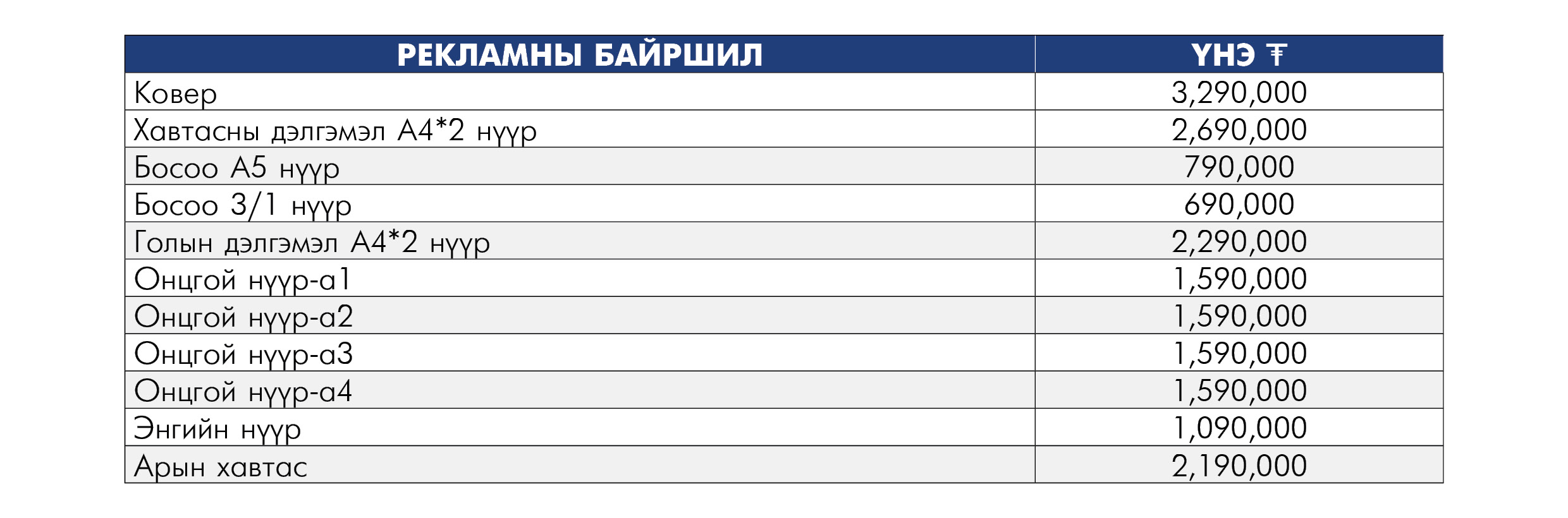 Иймд тус сэтгүүлд сурталчилгаагаа байршуулж хамтран ажиллахыг урьж байна.