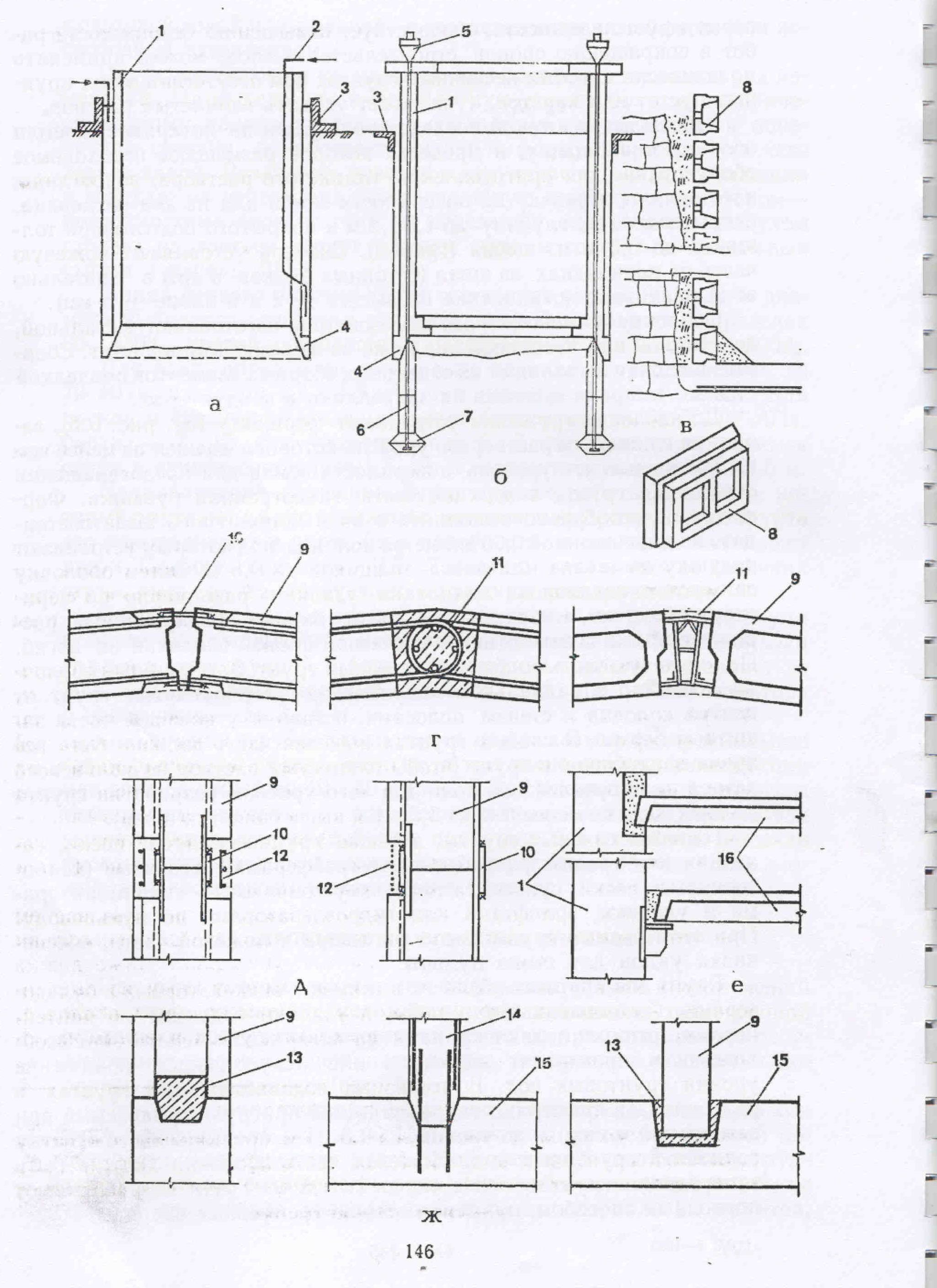 Зураг 15.8.Хөрсөнд хана суулгах аргын технологийн дараалал: а-цутгамал хана; б-угсармал хана; в-угсармал цутгамал хосолмол хана.