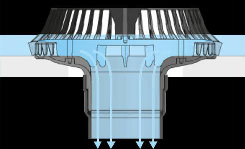 Дээврийн хур тунадасны ус зайлуулах уламжлалт системд тулгардаг дээрх асуудлуудыг дээврийн хур тунадасны ус зайлуулах сифонон систем шийддэг. /Зураг 3/