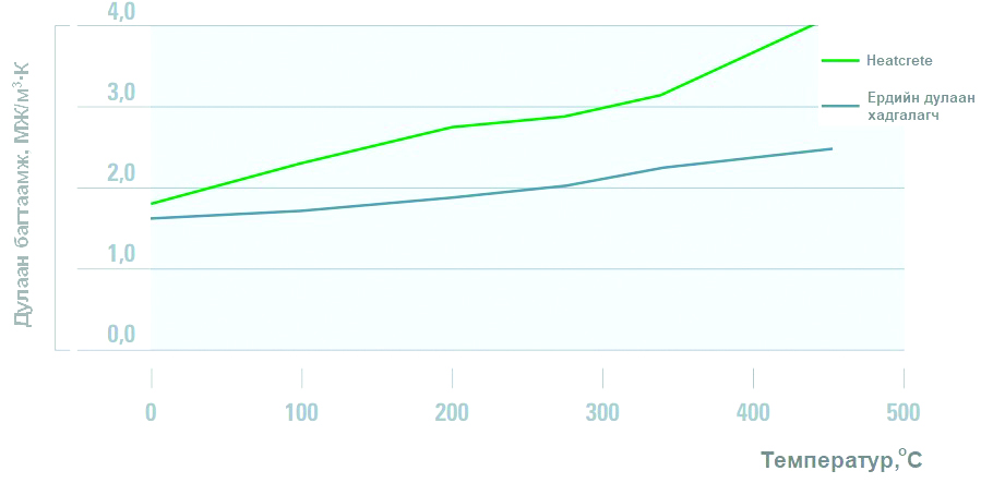 Зураг 3. “HEATCRETE” бетоны дулаан багтаамжийг өмнө нь гарган авсан дулаан хадгалагчтай харьцуулсан байдал