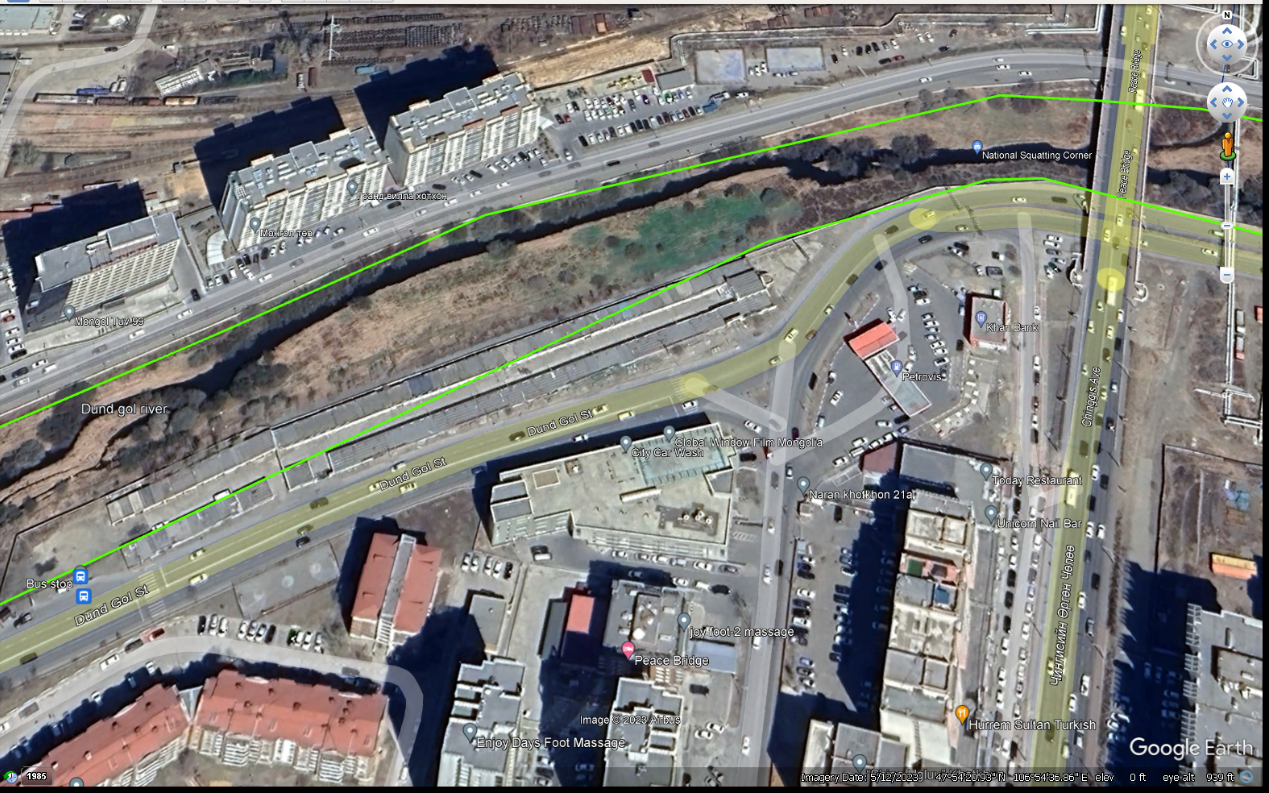 20. ТЭЦ-4 замын урд ХУД 4-р хороо Ирээдүй хотхоны чанх ар талд Дунд голын төгсгөл Баруун уулын сувагтай нийлж байгаа хэсэгт. 2022 онд “ Хүрээний хөвгүүд” ТББ шороо асгаж голын урсцыг нарийсгаж байсныг Албан шаардлага өгч зогсоосон. НЗХГ-ын захиалгаар гүүр баригдаж байна. Тухайн гүүрний баруун талд "Эвттрак" ХХК-ны орц гарцны гүүр зөвшөөрөлгүй зөрчилтэй.