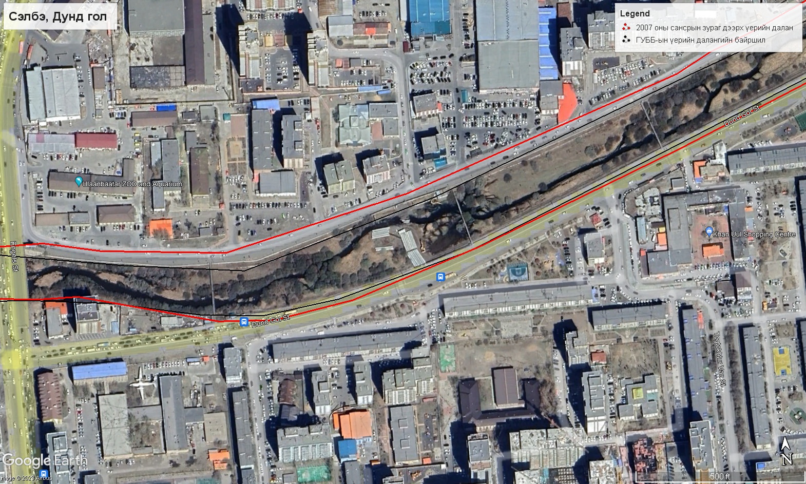 3. ХУД 15-р хороонд баригдаж буй усан парк спорт цогцолбор нь дунд голын далангийн голын даланг нарийсгаж барьсан зөрчилтэй.