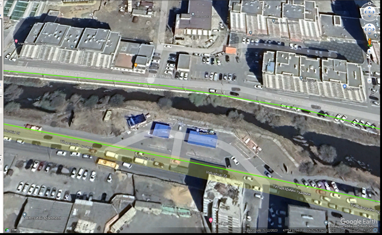 16. ХУД 3-р хороо гурвалжингийн гүүрний урд ЗӨК сантехникийн материал худалдааны төвийн урд байрлалтай эзэн холбогдогч нь тодорхой бус шар түц , том оврын авто машинуудын зогсоол. Энэ зогсоол нь дунд голын хөндлөн огтлолыг нарийсгасан зөрчилтэй.