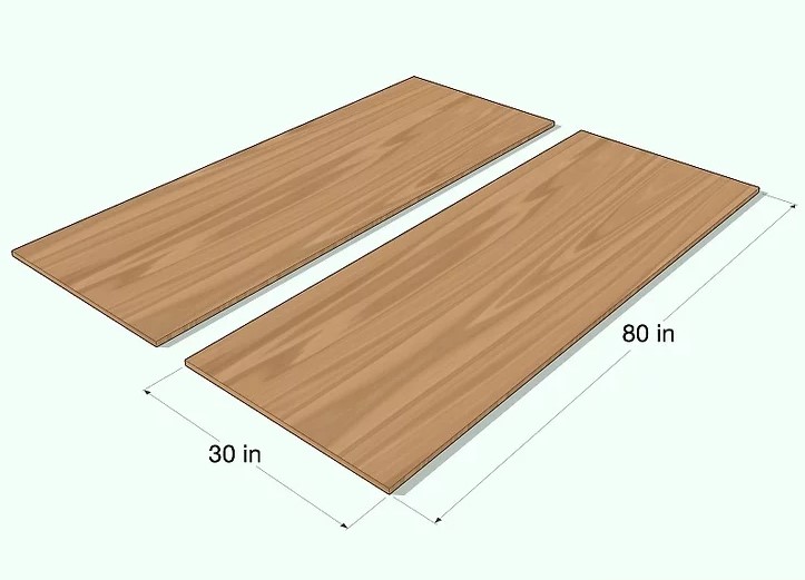 Матрасны хүрээний суурийг бэлтгэхдээ 2 фанер хавтанг 30 инч (76 см) 80 инч (200 см) зүсэж бэлдэнэ. Фанер хавтан тус бүр дээр зүсэх шулуун шугамыг харандаа ашиглан хэмжиж тэмдэглэнэ. Дараа нь дугуй хөрөө эсвэл ширээний хөрөө ашиглан эдгээр хавтангуудыг зөв хэмжээгээр зүсээрэй. Стандарт фанер хавтангууд нь 48 инч (120 см), 96 инч (240 см) байдаг. Хэрэв та стандарт фанер хавтан ашиглаж байгаа бол өргөнөөсөө 18 инч (44 см), уртаас нь 16 инч (40 см) зүсэж аваарай. Ингэснээр бидний хийж буй матрасны хүрээний суурийн хэмжээтэй адил хэмжээ үүсэх болно. Хэрэв та өөр хэмжээтэй матрасанд зориулж хүрээ хийж байгаа бол эдгээр хэмжилтийг тохируулан хүрээний сууриа бэлдэхийг санаарай. Суурины фанер хавтан нь хүрээтэй ижил хэмжээтэй байхыг анхаараарай.