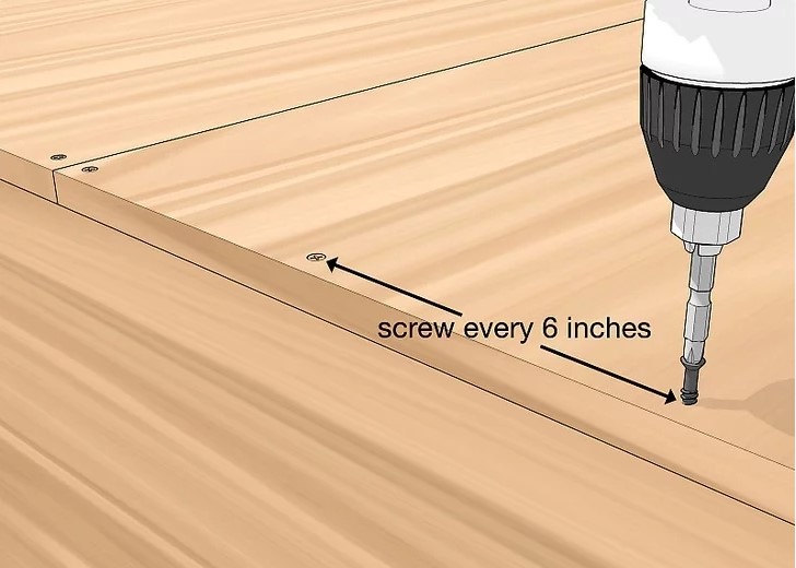 Хүрээний дээр байрлуулсан хавтангуудыг хүрээтэй холбохдоо хүрээг тойруулан 6 инч (15 см) тутам боолтоор өрөмдөж тогтооно. Ингэхдээ хавтангуудын дээрээс матрасны хүрээрүү өрөмдөнө. Өрөмдлөгийн явцад тулгуур хүрээг сэтлэж цоолохоос сэргийлж хүрээний захаас 2,5 см зайтай өрөмдөнө.