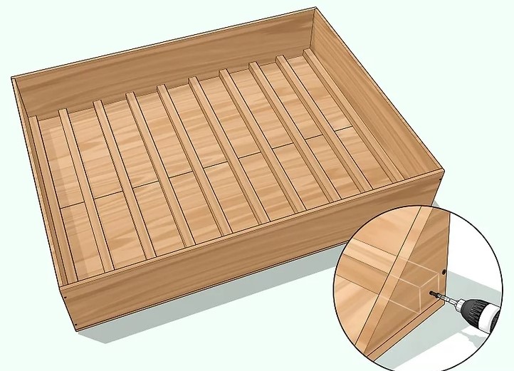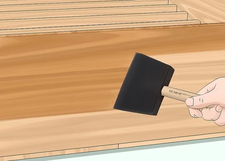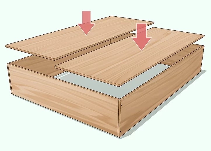 Хүрээний дээд талд фанер хавтангуудыг уртын дагуу тэгш хэмтэй байрлуулна. Фанер хавтан бүр хүрээний талуудтай зэрэгцэн таарч байх ёстой. Өгөгдсөн хэмжээсийн дагуу зүсэгдсэн бол хүрээ, суурь хоёрын хооронд зай гарахгүй яг таарч байна.