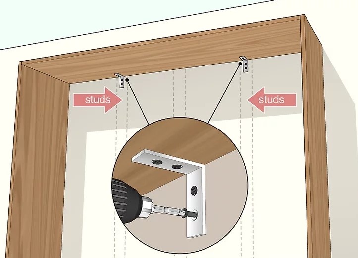Шүүгээний дотор дээд талд 2 ширхэг булан төмрөөр хананд холбоно. Шүүгээгээ хананд тулгаж аль болох завсар зайгүй байршуулна. Шүүгээний төвийн олон булан төмрүүдийн хоорондын зай хажуу талуудын зай зэргийг тооцоолон оновчтой байршуулаарай. Мөн булан төмрийн нэг талыг шүүгээний дээд тулгуурлуу нөгөө талыг хананд байрлуулан цахилгаан өрөм ашиглан тогтооно.