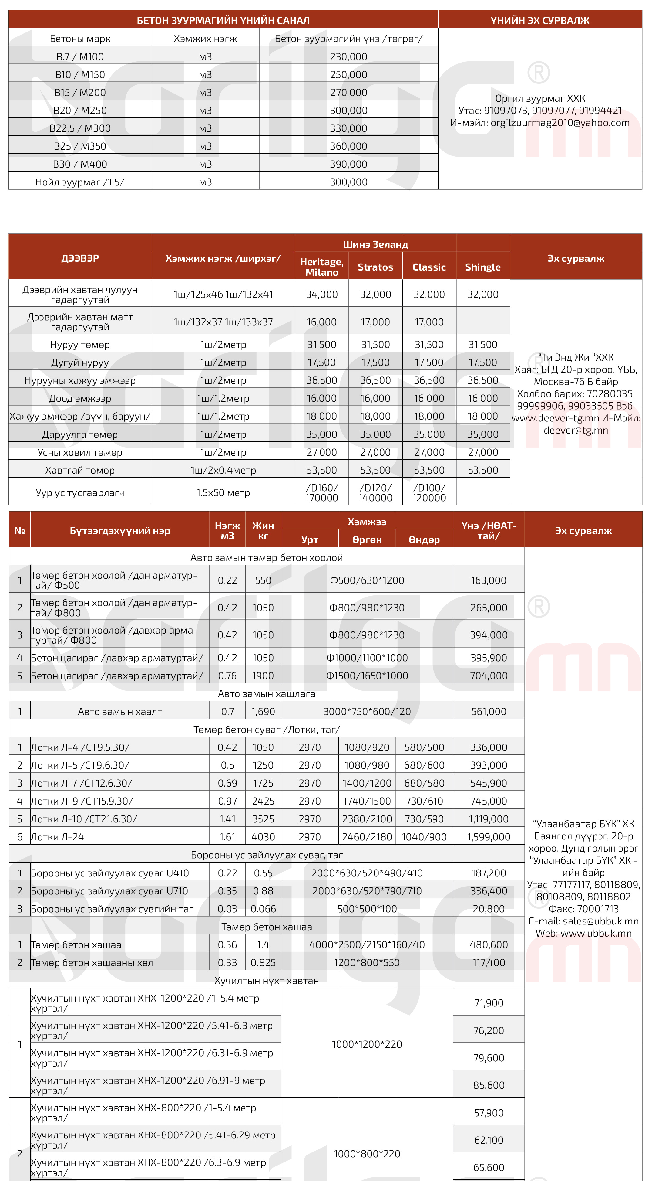 Эдгээр болон бусад барилгын материалуудын мэдээллийг ЭНД дарж үзнэ үү