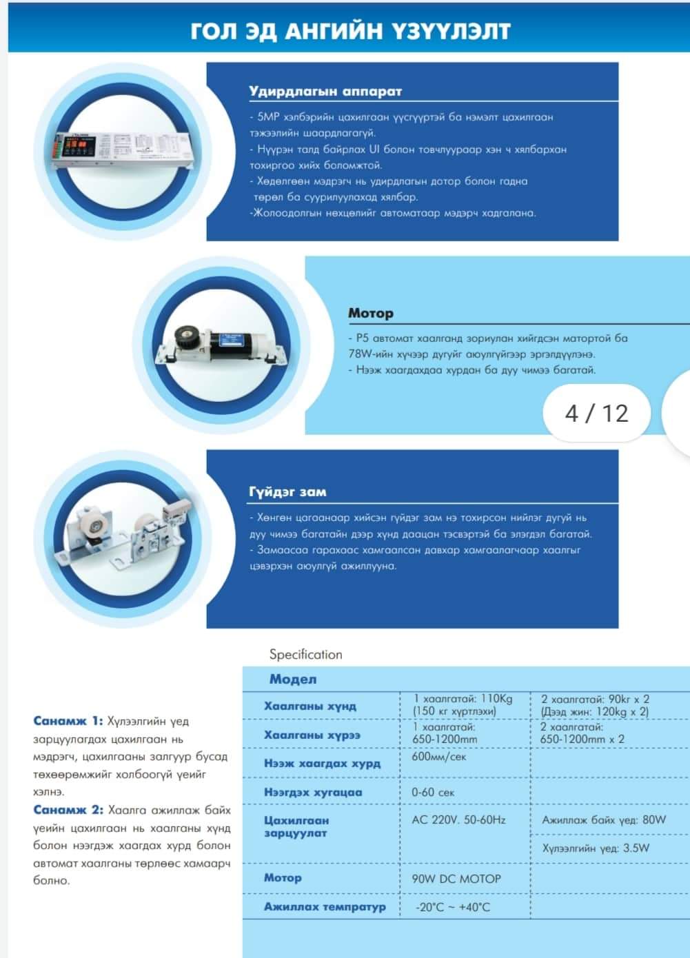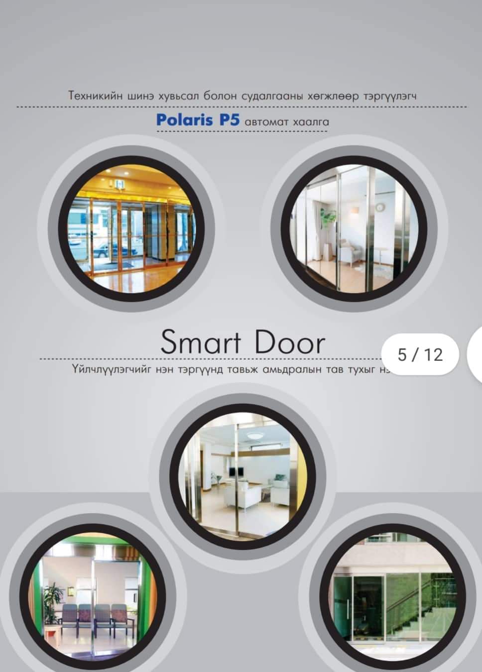 Солонгос улсад үйлдвэрлэгддэг Polaris P5 дэвшилтэт технологийн бүрэн хянах боломжтой ухаалаг удирдлагын аппараттай автомат гүйдэг хаалгандаа захиалга авч байна.