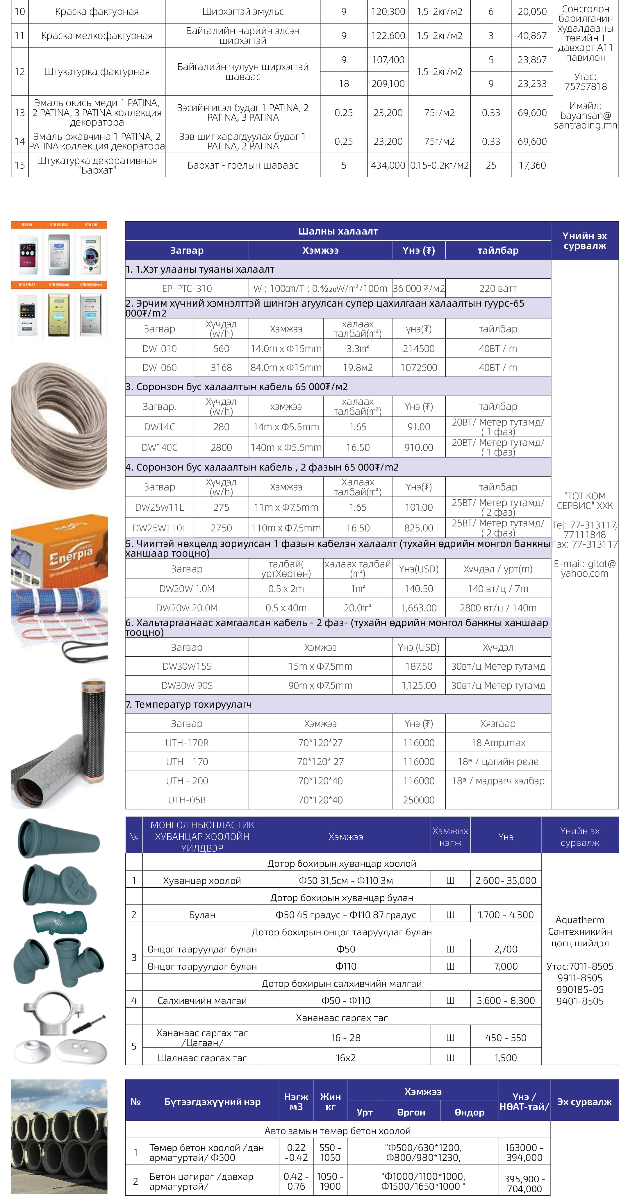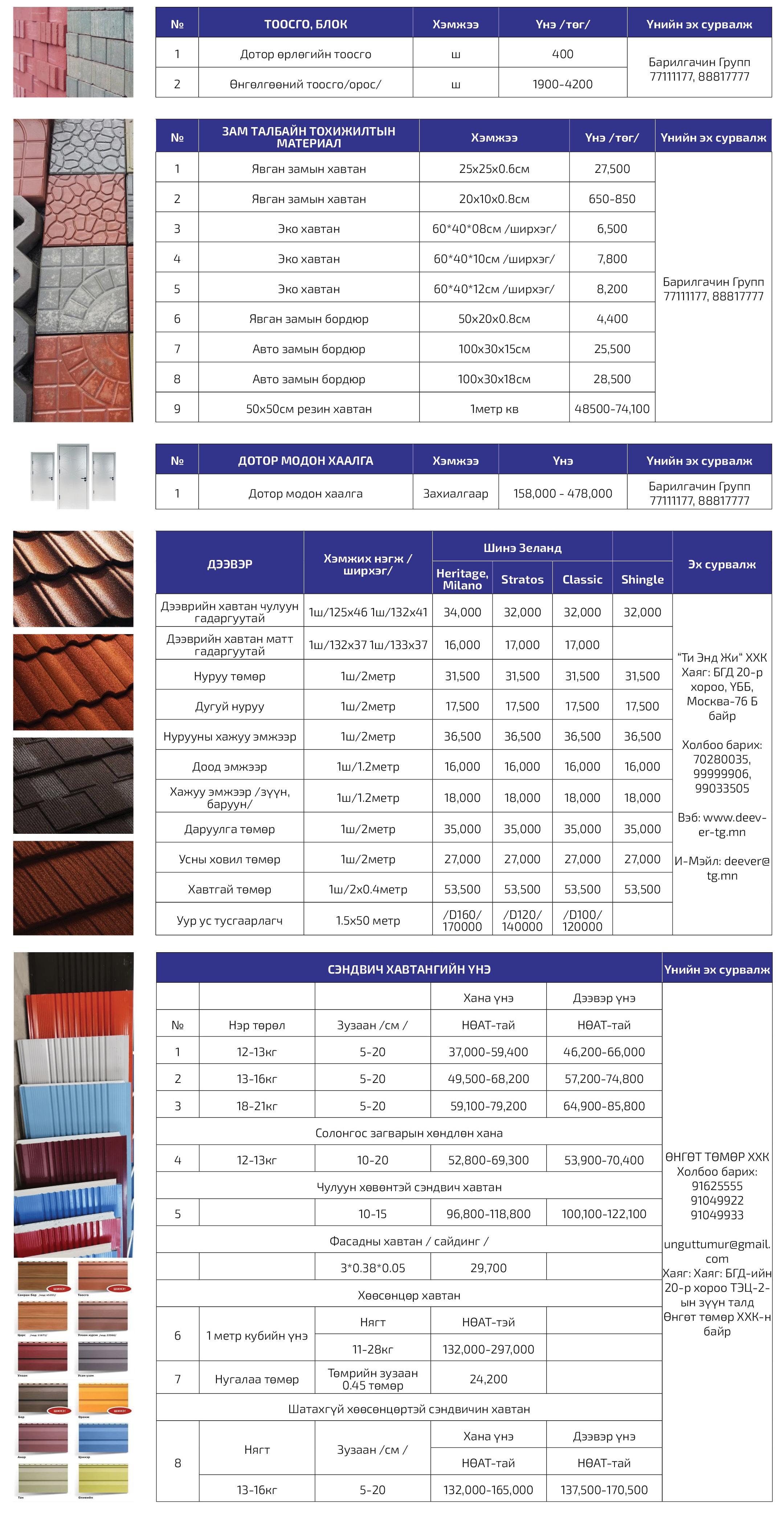 Эдгээр болон бусад барилгын материалуудын мэдээллийг ЭНД дарж үзнэ үү