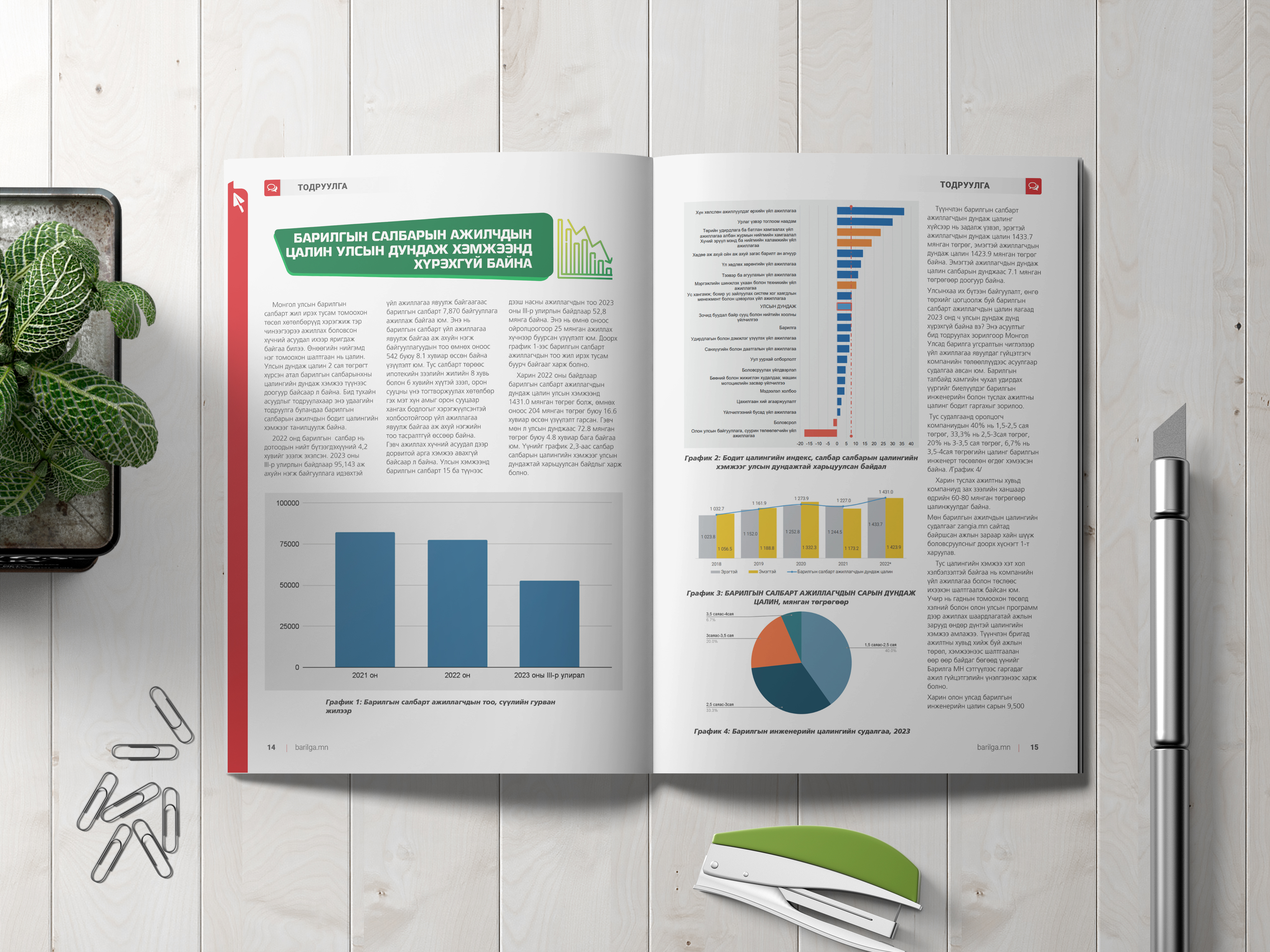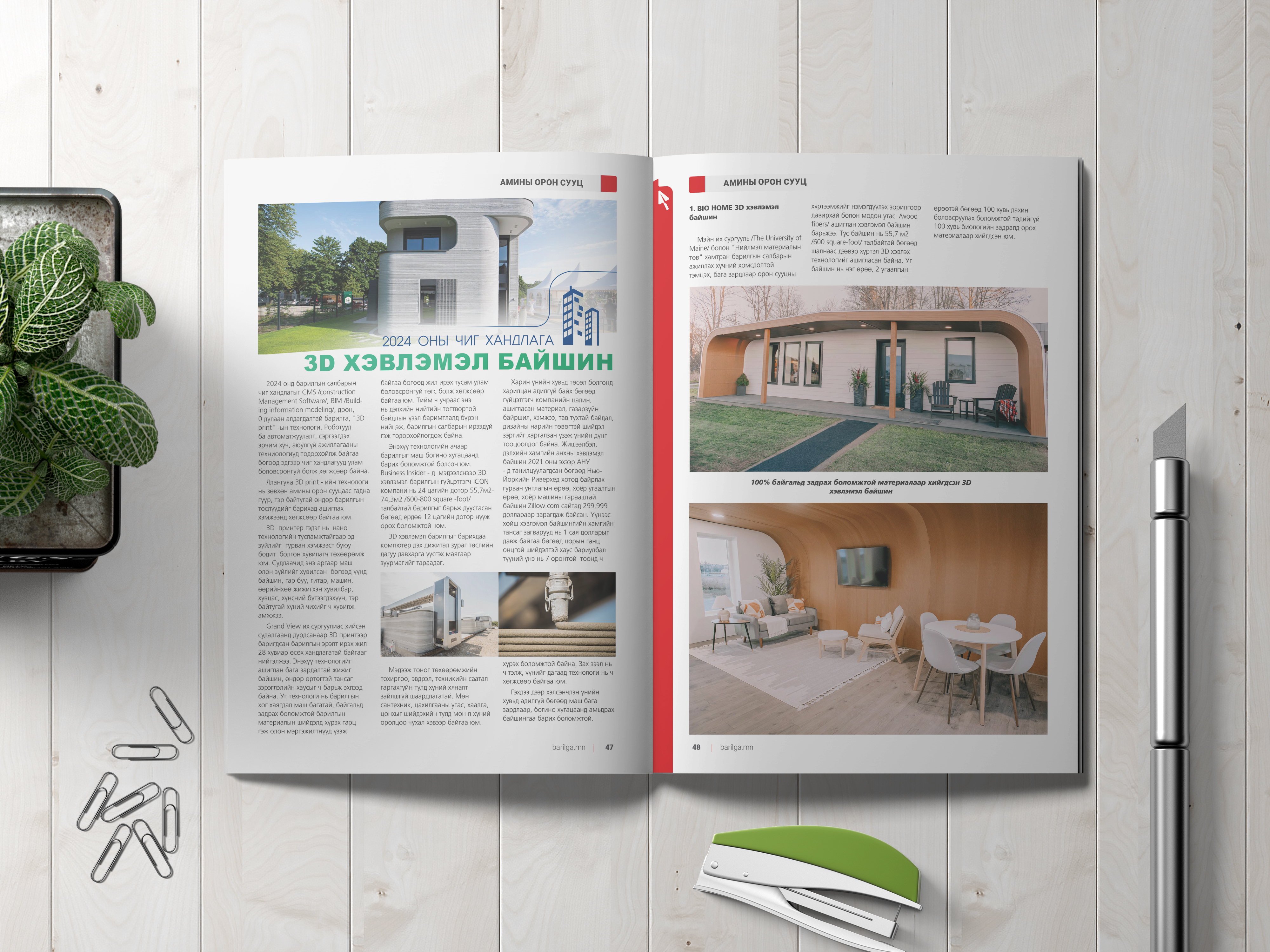 Барилгын салбартай холбоотой мэдээ мэдээлэл, судалгаа, салбартаа нэр хүндтэй зочдын ярилцлага, мэргэжилтний зөвлөгөө, шинэ орон сууц, барилгын материалын үнэ ханшийн судалгаа сар бүр, ажил гүйцэтгэлийн үнэлгээ улирал бүр шинэчлэн гаргадаг Барилга МН сэтгүүлийн 2024 оны эхний дугаар уншигчдадаа хүрч эхэллээ.