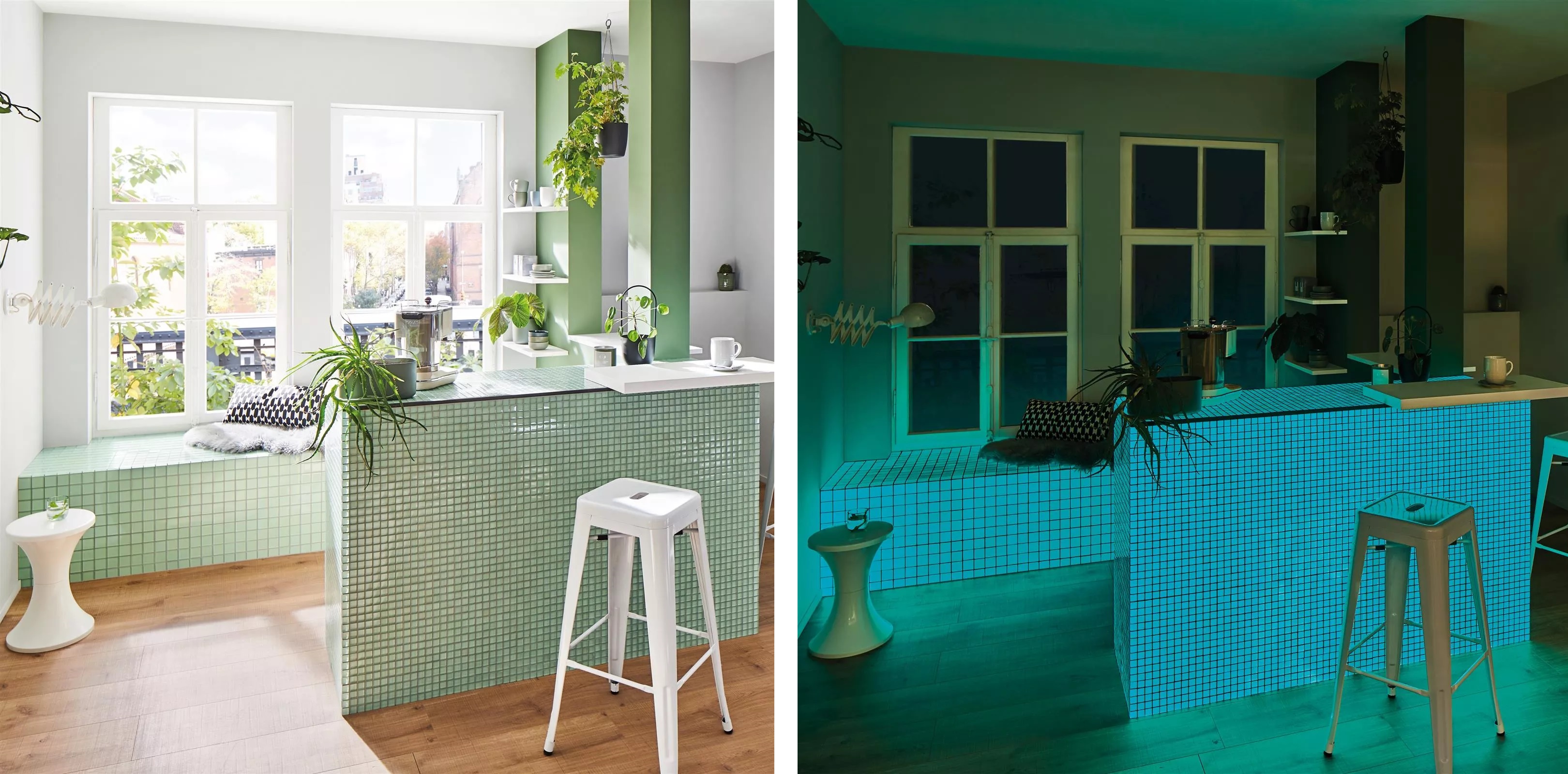 Эдгээр плитаг гэрлээр үйлчилсний дараа хэдэн цагаар өөрөө гэрэлтдэг байна. Үйлдвэрлэгчийн тайлбарлаж байгаагаар энэхүү плитаны флюресцент нөлөө нь олон жилийн турш хадгалагдах ажээ.