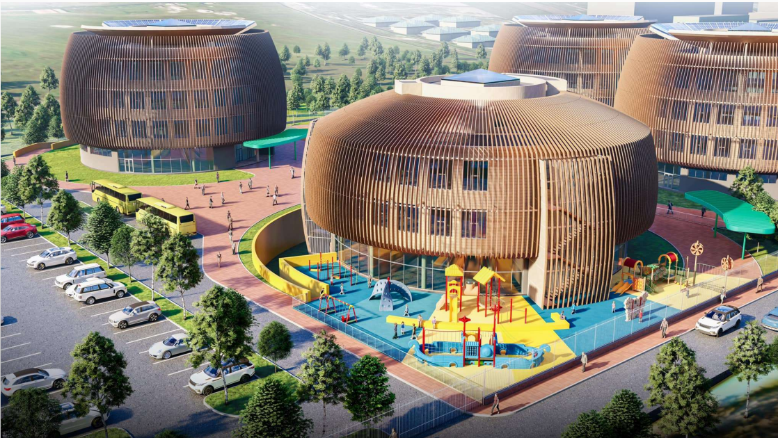 “Хүмүүн” 1600 хүүхдийн олон улсын сургуулийн барилга хамгийн нарийн инженерчлэлтэй барилга болсон. Уг барилга нь тэнхлэгээрээ 32м диаметртай, дугуй хэлбэртэй, зоорийн давхраас гадна 4 давхар, төмөр бетон арагт бүтээцтэй барилга юм. Мөн 1 дүгээр давхрын шалнаас техникийн давхар хүртэл 22.5 метр өндөр, 16м диаметр атриумтай ба атриумын оройн хэсэг пирамид хэлбэрийн шилэн дээвэртэй гэдгээрээ онцлог. Эрчим хүчний хэмнэлттэй шийдлээр барьж, BMS /Building mamagement system/ системийг нэвтрүүлсэн. Зургийн баг, архитектор маань уялдаа холбоотой, сайн ажилласан гэж бодож байна.