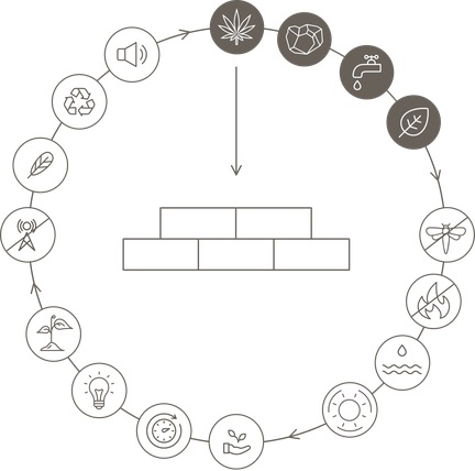 “Hempcrete”-ийн дулаан дамжуулалт нь маш бага, тухайн материалын найрлагаас хамаарах боловч дулаан дамжуулалтын коэффициент дунджаар 0.07 Вт/мК байдаг. Үүгээр барьсан 36 мм зузаантай хана нь Европын эрчим хүчний хэмнэлттэй барилгын стандартыг хангадаг байна. Өөрөөр хэлбэл дулааны алдагдалгүй барилгын шаардлагыг хангана гэсэн үг. Дулааны алдагдал багатай учраас зуны улиралд байшин хэт халахаас хамгаалж сэрүүн тааламжтай уур амьсгалыг бүрдүүлж чаддаг байна.Үүний зэрэгцээ дуу тусгаарлалт нь 37-45 децибелийн хэмжээтэй байдаг ажээ.