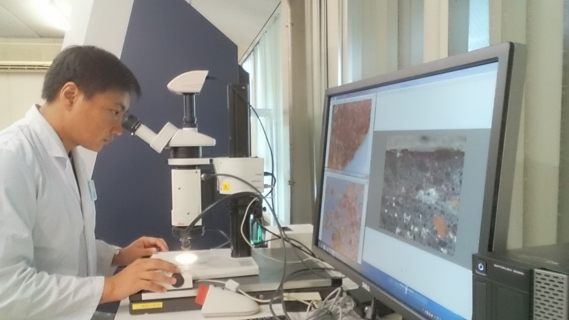 Соёлын өвийн консервацын шинжлэх ухааны хүрээнд соёлын өвийн гэмтлийн шалтгаан, түүнийг оношлох нь үндсэн үйл ажиллагааны гол зүйл болж явдаг. Манай улсын хувьд дурсгалт уран барилгын сэргээн засварлалтын өмнөх суурь судалгаа дутмаг байдгаас уран барилгын үнэ цэнтэй олон мэдээлэл устаж, алга болсоор байгаагийн нэг нь сүм хийдийн модон хийцийн будаг болон түүний доорх суурь давхарга юм. Олон улсад баримталж буй уран барилгын сэргээн засварлалт нь тухайн өвийн материалын судалгаа (Зураг 6), технологийг шинжлэн тогтоох (Зураг 7), ямар гэмтэл үүссэж буйг лабораторийн нөхцөлд нээн илрүүлэх, туршилтаар нотлогдсон байдал дээр түшиглэж сэргээн засварлалтын төлөвлөгөө гаргаж, гүйцэтгэж байна.