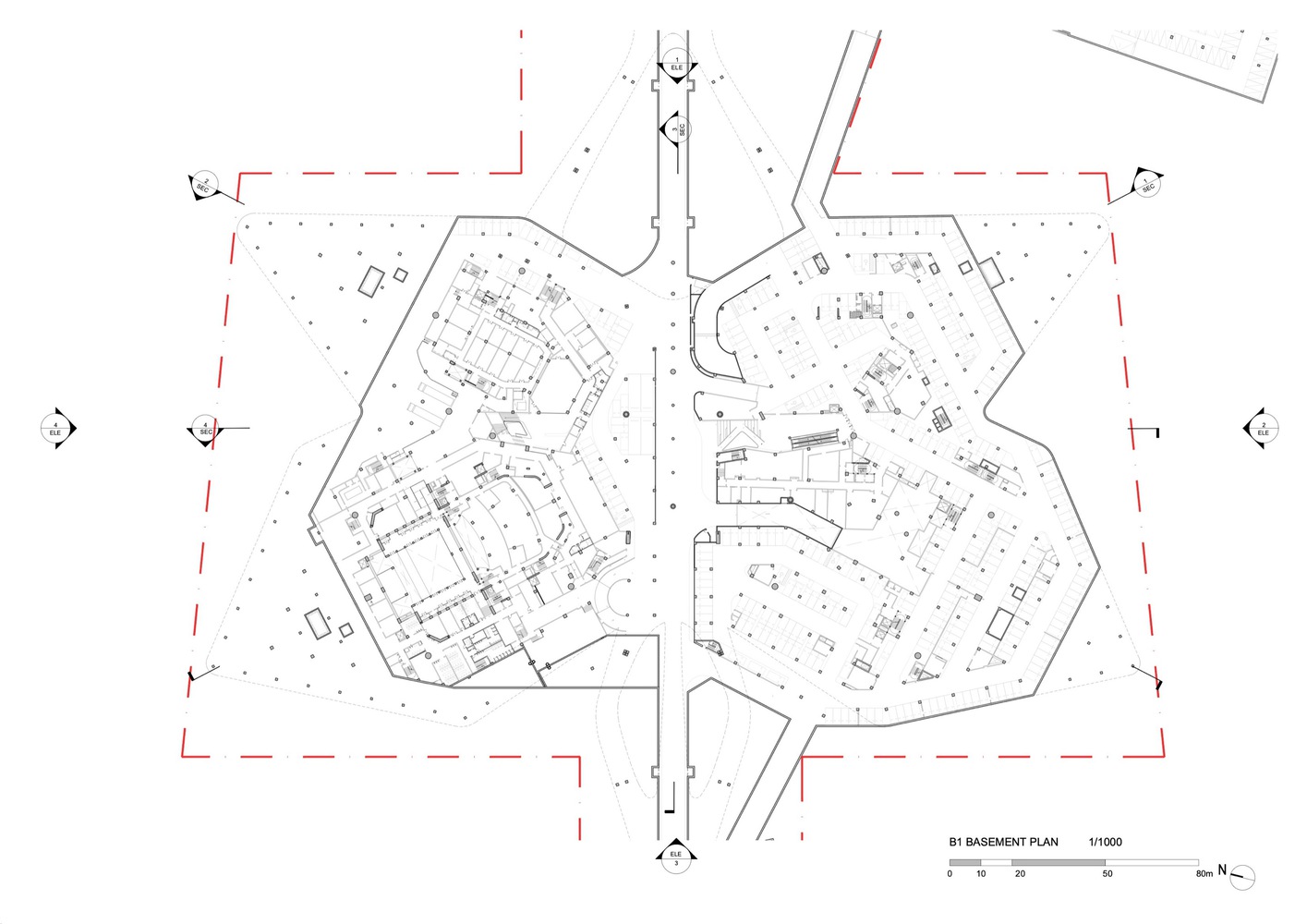 Жигүүр бүрийг хооронд нь холбосон гүүр нь барилгын төв хэсэгт олон давхаргат нийтийн талбайг бий болгож, дотоод засал чимэглэл, кафе, ресторан, боловсролын байгууламж бүхий орчныг бүрдүүлжээ. Тухайн олон нийтийн хэсэгт байгалийн гэрлийг ашигласан нь үйлчлүүлэгчдийн сонирхлыг татахын зэрэгцээ чөлөөт цагаа өнгөрүүлэх таатай орчныг цогцлоожээ.