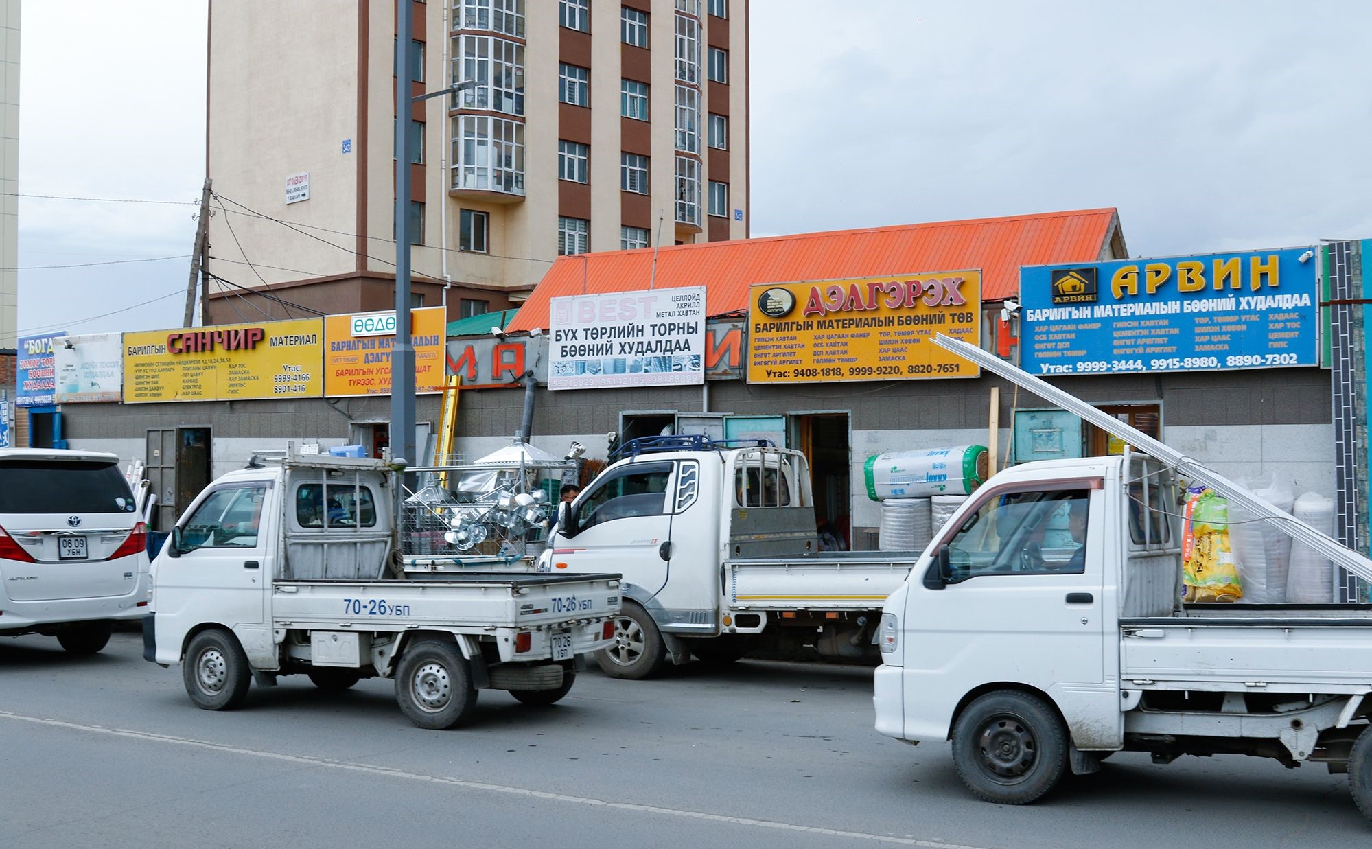 “100 айл” барилгын материалын захад ихэвчлэн худалдаа эрхлэгч, аж ахуй нэгжүүд үйл ажиллагаа явуулдаг тул тэднийг баруун болон зүүн бүс дэх барилгын худалдааны төвүүдэд хуваарилахаар төлөвлөж байгаа. Жишээ нь сүүлд Сонсголонд том барилгын материалын худалдааны төв нээгдээд үйл ажиллагаа жигдрээд явж байна. Тиймээс эхний ээлжинд “Барилгачин” худалдааны төв, Дүнжингаравын зам дагуух Шинэ 100 айл руу хуваарилан нүүлгэх боломжтой гэж харж байгаа.