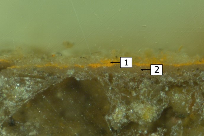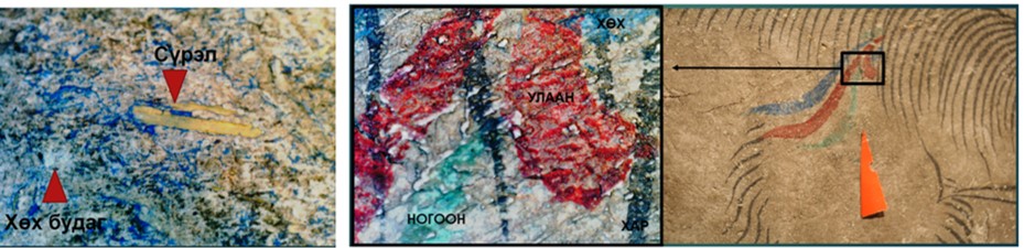 Зураг 5. Монголын эзэнт гүрний үеийн барилгын ханын зураг, будгийн шинжилгээний үр дүн
