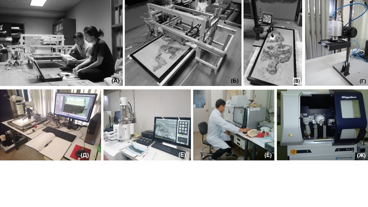 Зураг 4. Кидан гүрний хааны бунхны туурган зураг, будгийн шинжилгээний явц