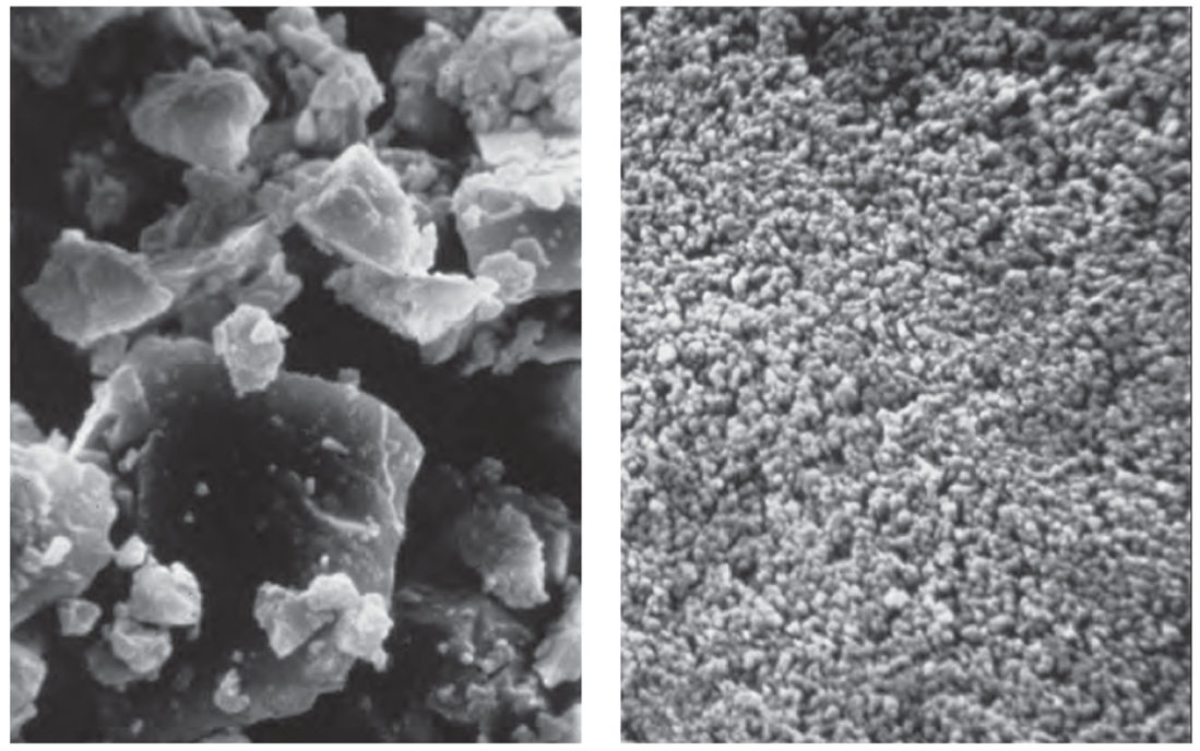 Зураг 2. Зүүн талд цемент болон баруун талд цахиурын тортгийн ширхгийг микроскопоор харж, харьцуулсан байдал