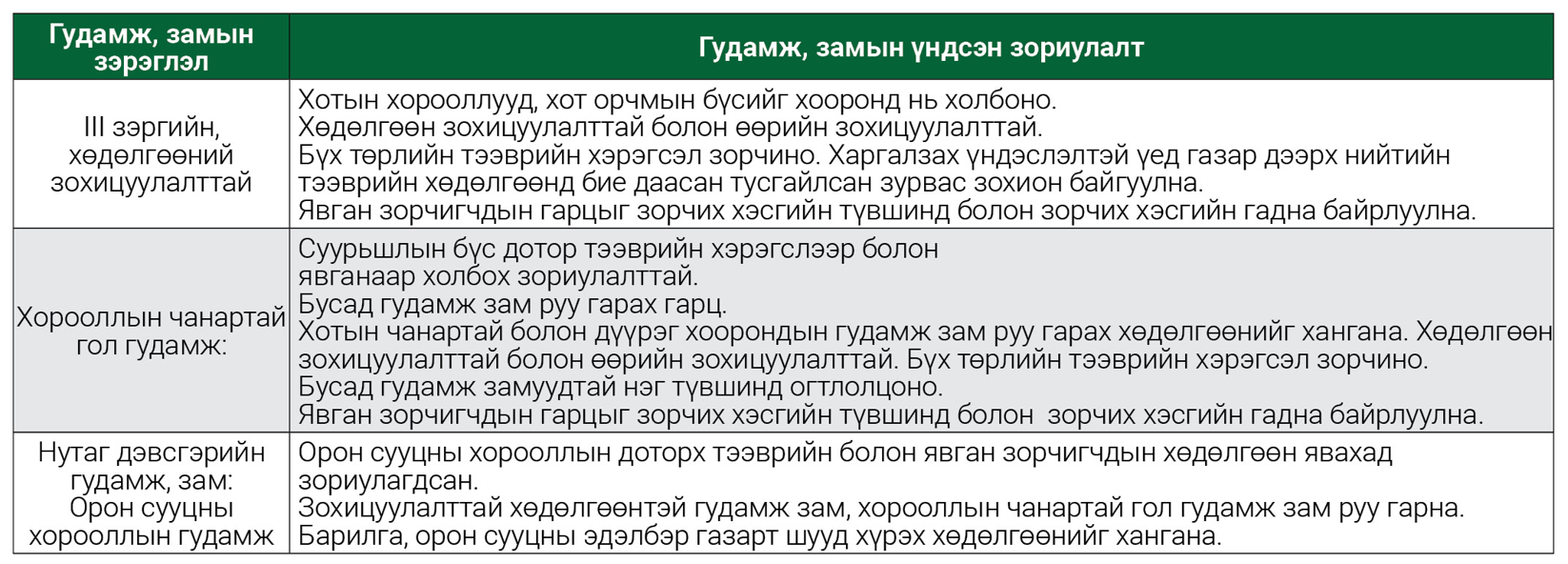 Хүснэгт 1. Гудамж замын зэрэглэл ба зориулалт (БНбД 30-01-21)