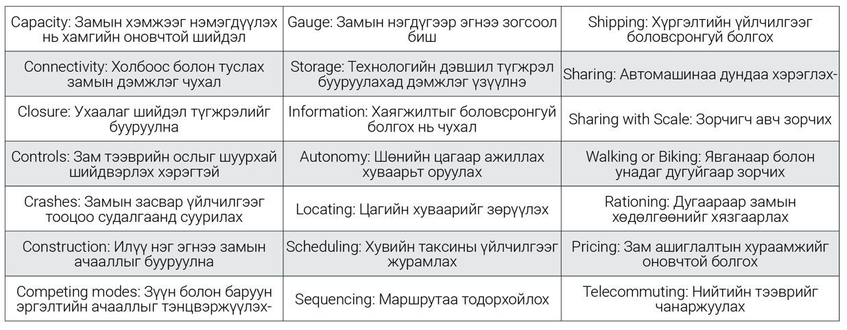 Хүснэгт 3. Түгжрэл бууруулах 21 шийдэл.