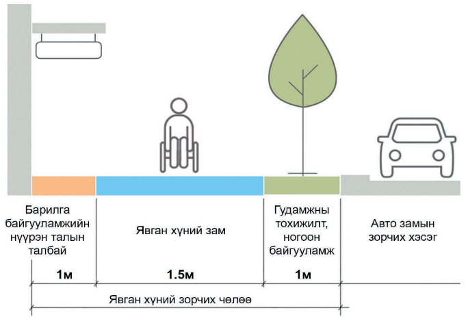 Зураг 2. Явган хүний замын хэмжээсүүд (UCS 0901B:2022)