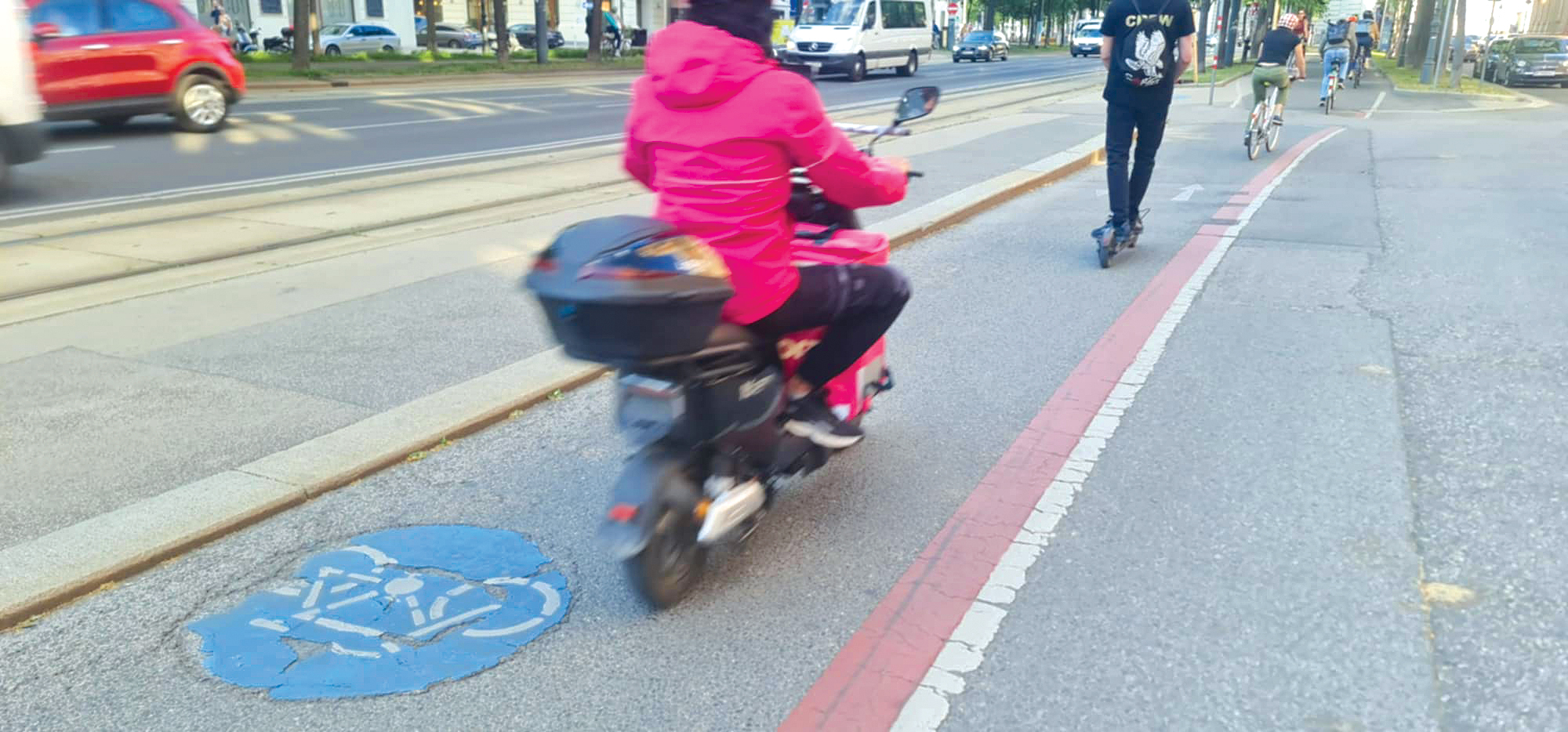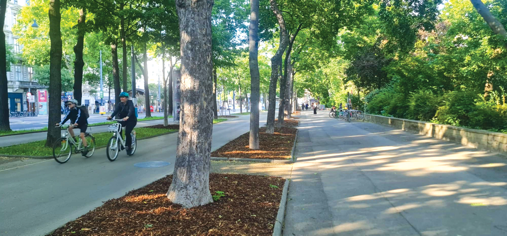 Зураг 5. Дугуйн болон явган замыг ногоон байгууламжаар тусгаарласан байдал. Вена хот, Австри улс