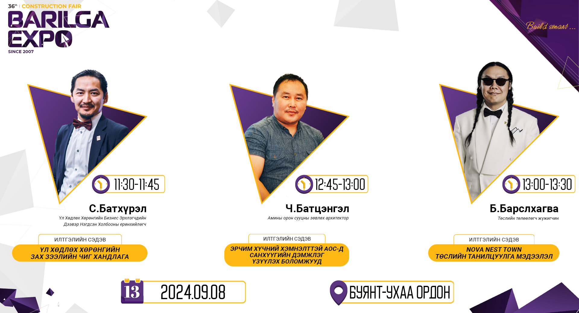 Та бүхнийг 36 дахь удаагийн BARILGA EXPO үзэсгэлэн яармагт хүрэлцэн ирэхийг урьж байна.