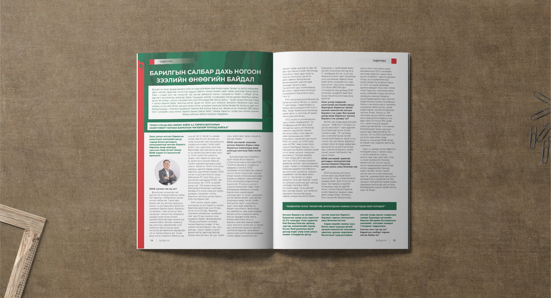 Дэлхийн хүн ам тасралтгүй өсөж буй энэ цаг үед хүний хэрэглээнээс үүдэн байгаль орчны сөрөг нөлөөг багасгах, бууруулахын тулд дэлхий нийтээр авч хэрэгжүүлж буй арга хэмжээний нэг нь Ногоон барилга барих юм. Тэгвэл олон улсын стандартад нийцсэн EDGE систем ашиглан гадны санхүүжилтээр хэрхэн ногоон барилга барих талаар EDGE эксперт О.Гантулгаас тодрууллаа.