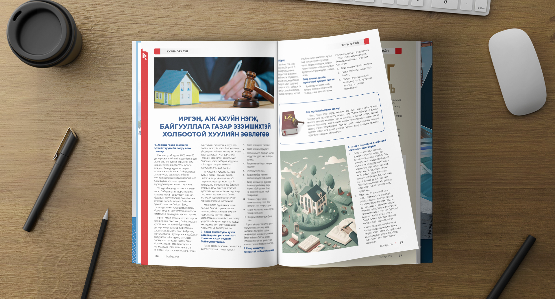 Газрын тухай хуулийн дагуу иргэн, аж ахуй нэгж, байгууллага газар эзэмшиж гэрээнд заасан зориулалт, нөхцөл, болзлын дагуу хуулиар зөвшөөрсөн хүрээнд өөрийн мэдэлд байлгах эрхийн талаар энэ удаагийн Хууль, эрх зүйн буландаа Иргэн, аж ахуй нэгж, багууллага газар эзэмшихтэй холбоотой хуулийн зөвлөгөөг хүргэж байна.