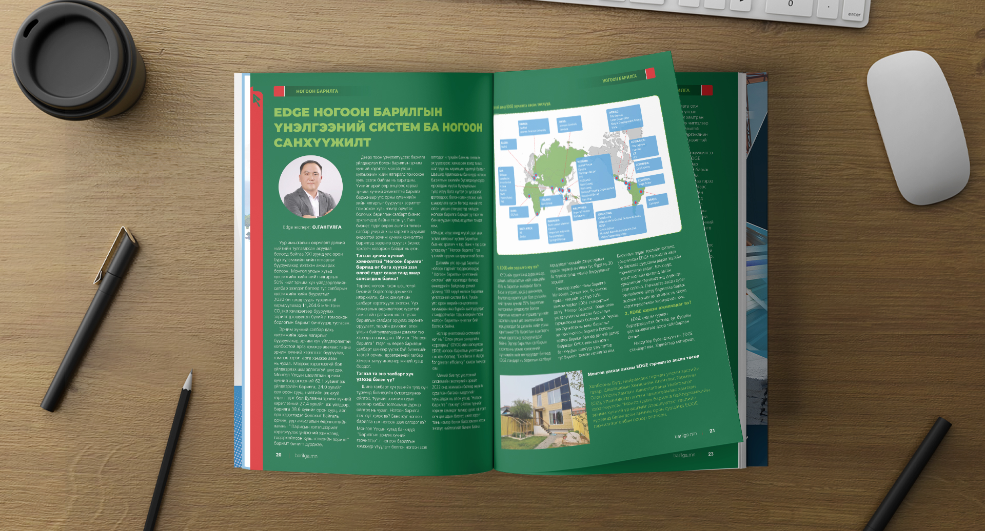 Манай улсын хувьд барилга үйлдвэрлэл болон барилгын эрчим хүчний хэрэглээ хүлэмжийн хийн нийт ялгарал томоохон хувь эзэлдэг. Барилгын салбар дахь хүлэмжийн хийн ялгарлыг бууруулах, эрчим хүчний хэмнэлт үүсгэхэд дэлхий нийтээр анхаарч буйн нэг жишээ болох байгаль орчинд ээлтэй ногоон барилга барих, санхүүжүүлэх юм. Тэгвэл Олон улсын стандартад нийцсэн ногоон барилга барих, олон улсын санхүүгийн эх сурвалжаас зээл авахад ямар шалгуур хангах, ямар шат дараалалтай байдаг талаар Edge expert О.Гантулгатай хамтран бэлтгэлээ.
