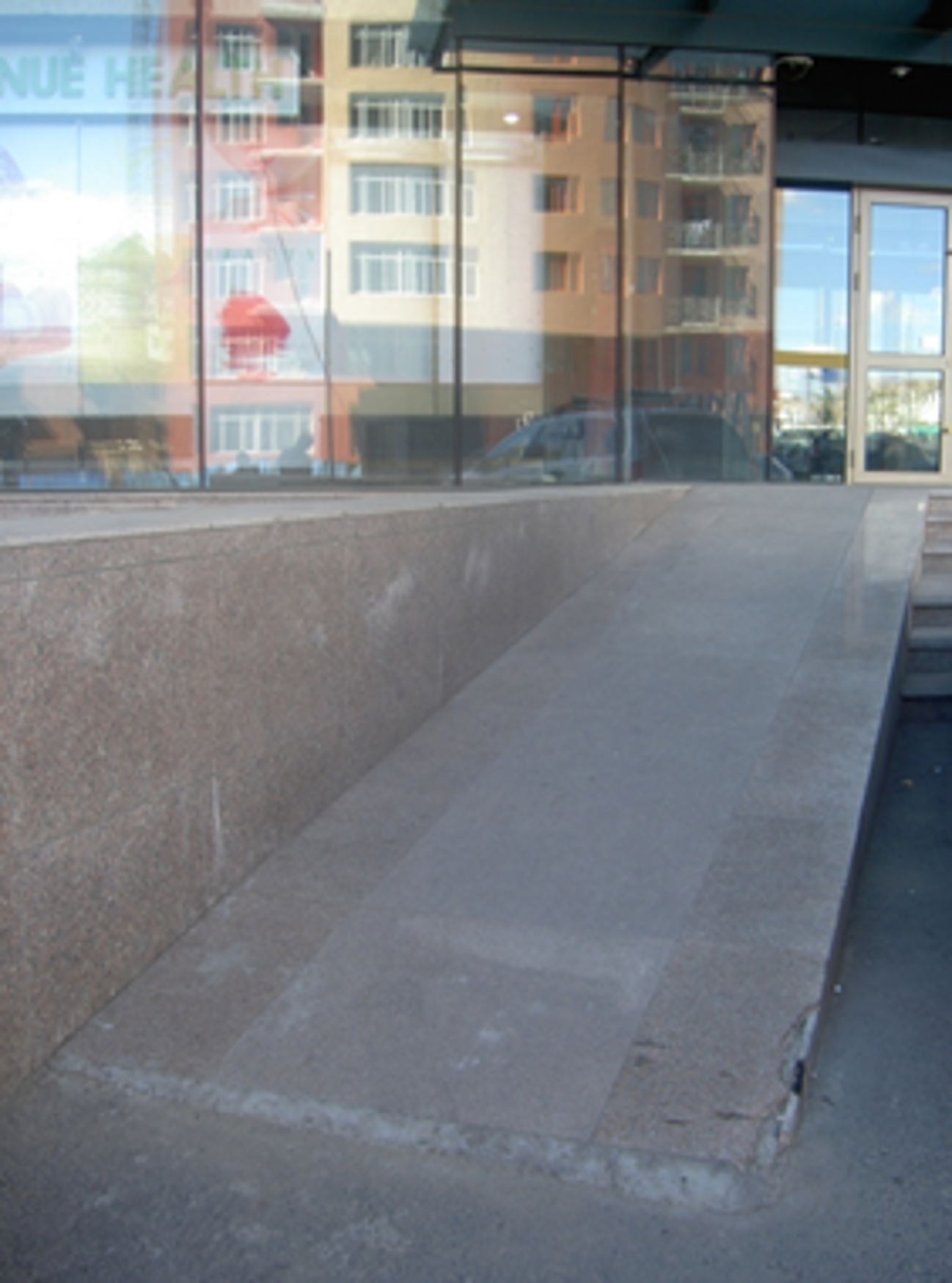 ● Налуу зам, авто зогсоолууд стандартад нийцэхгүй. Хэт огцом, өндөр мөн хашлага бариул төлөвлөөгүй байна.