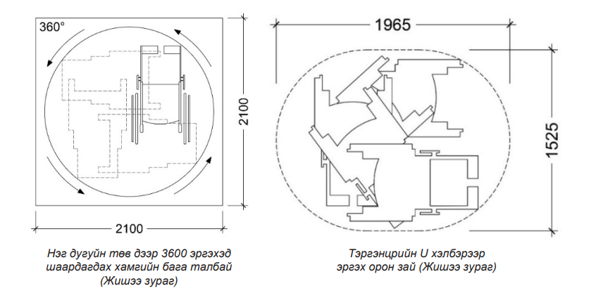 Хөдөлгөөний тоноглол хэрэглэдэг буюу тэргэнцэр, суга таяг хэрэглэдэг хөгжлийн бэрхшээлтэй хүмүүст хүрэлцэхүйц орон зай хуваарилагдсан байх ёстой байдаг.
