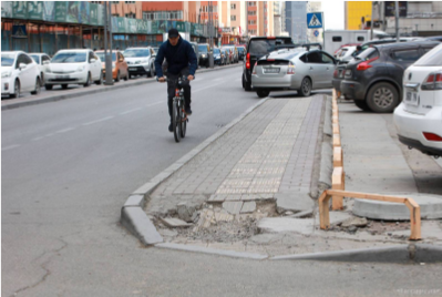 Зураг2. Нийтийн эзэмшлийн гудамж талбайд хөдөлгөөний бэрхшээлтэй явган зорчигчийн зам шаардлага хангаагүй, эвдэрсэн байдал