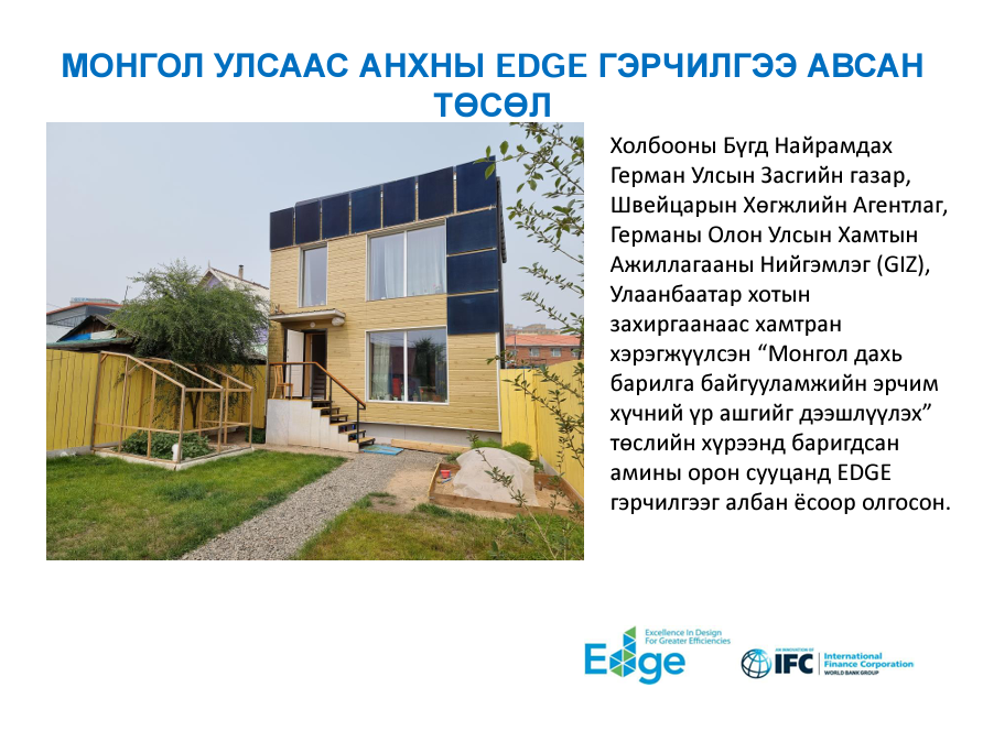 Юутай ч та бүхэнд ногоон барилгын бизнесийг тойрсон асуултуудад хариулт олоход EDGE систем томоохон гарын авлага болно хэмээн итгэж байна.