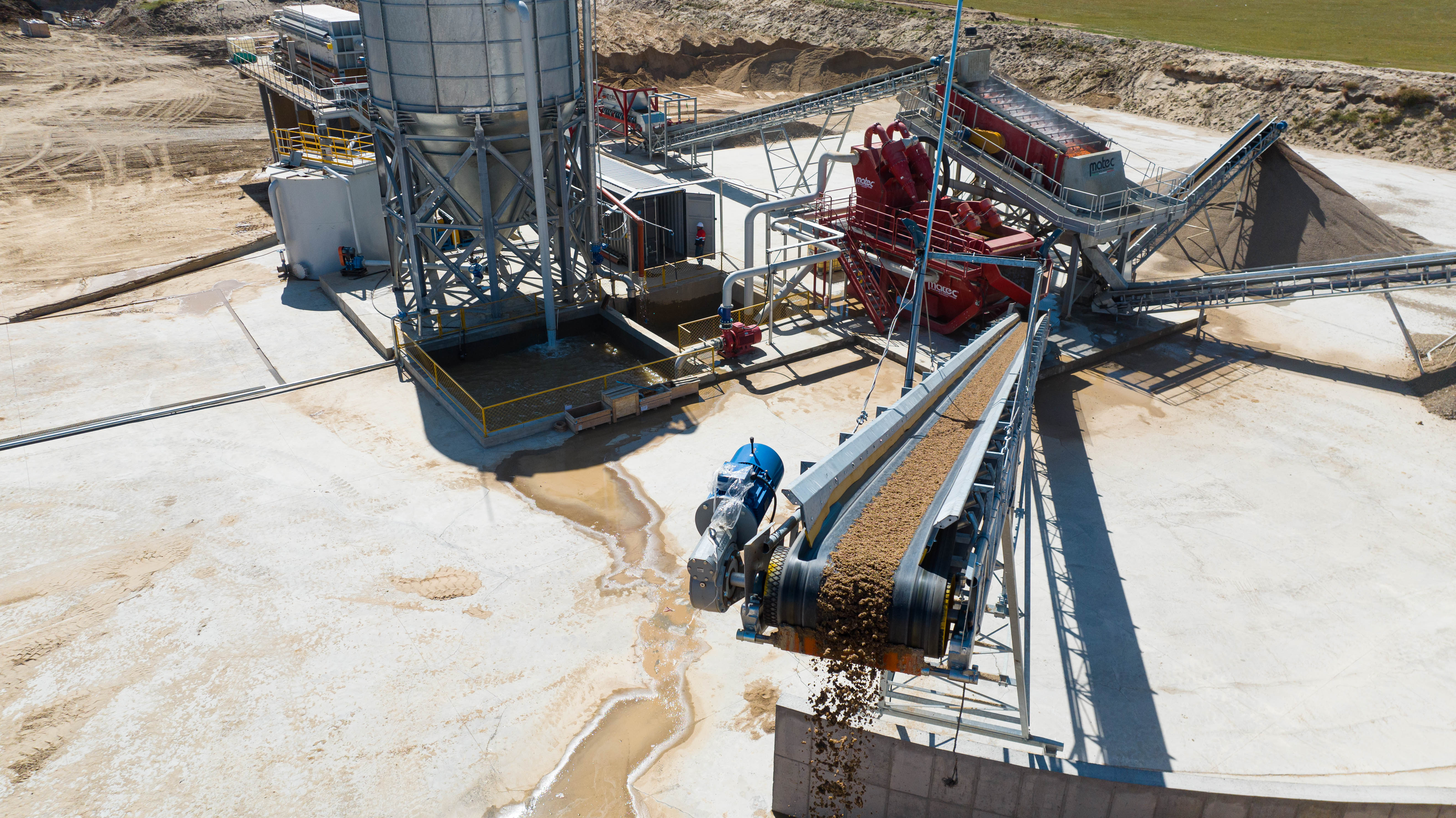 Элсийг үйлдвэрлэхдээ уурхайгаас олборлосон элс - хайрыг чичиргээт шигшүүр дээр шигшилт - угаагаад +10 мм хаягдал буюу бүхэл чулуу, 5-10 мм угаагдсан хайргыг ялган 5 мм элс лаг шаврын хамт дараагийн дамжлага болох гидрофиклонд хүргэгдэг. Гидроциклонд элсийг угаан баяжуулж угаасан элс болон лаг шаврыг ялгах бөгөөд тунгаагуураар дамжин фильтер пресс-ээр шүүгдэн хатуу кек болж гардаг.