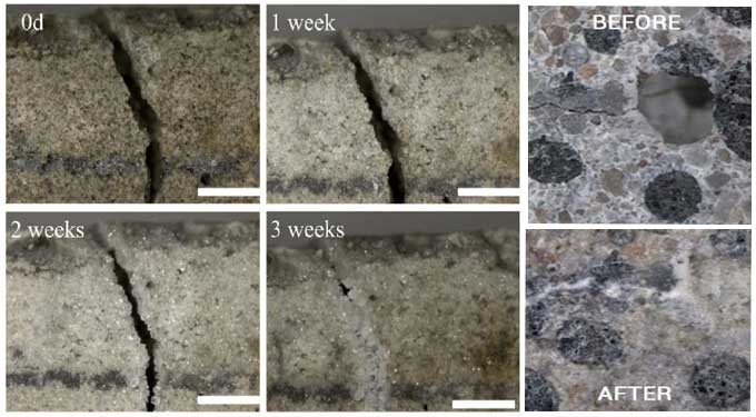 Олон жилийн явцад ямар ч бетонд бичил цав хагарал үүсэх нь гарцаагүй бөгөөд ийм тохиолдолд цав хагаралд ус чийг нэвтэрч, чийг нь нууц бактериудыг сэргээж, бетоны шохойн чулууг идэж шинэ зуурмаг хэлбэрт оруулах бөгөөд үүссэн ан цавыг дүүргэж нөхөн засна.