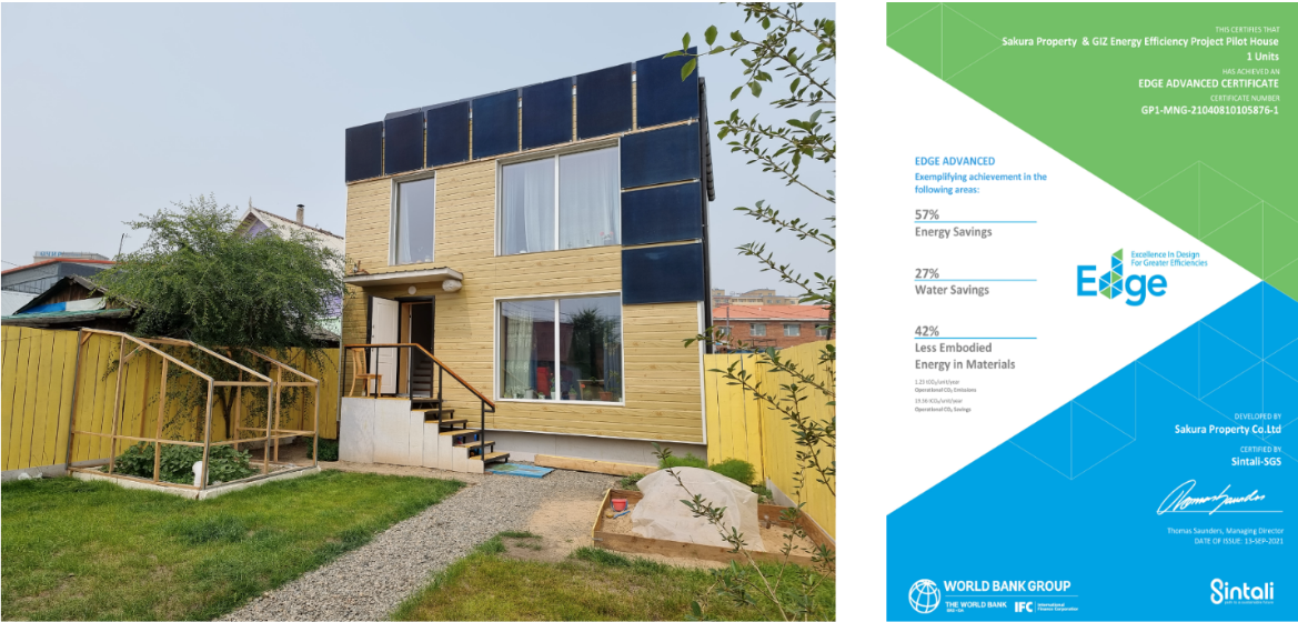 Барилгад Level 1: EDGE certification авах боломжийн тухайд судалж үзвэл дараах үр дүн гарна. Монгол Улсад ногоон барилгын EDGE Certified гэрчилгээ авсан анхны бөгөөд цорын ганц барилга бол Sakura Property-н Pilot House юм. Монгол Улсад EDGE гэрчилгээ авсан анхны бөгөөд цорын ганц барилгад гэрчилгээжүүлэлт олгосон байгууллага бол Sintali-SGS юм.