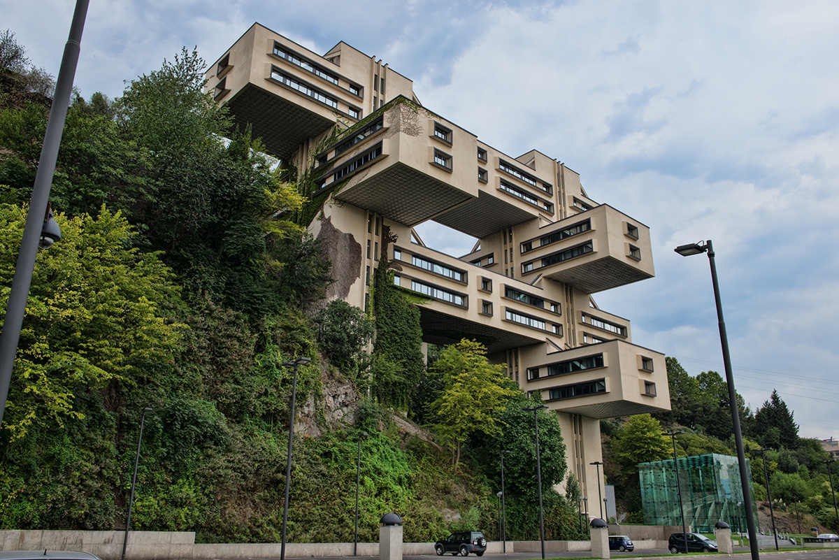 Гүрж улсын Төв Банк: 1970-аад оны дундуур Гүрж ССР-ийн Автозамын Яамын орлогч сайд Чахава тэр үедээ л сонсогдож байгаагүй концепцийн барилга барьж тус яамаа шилжүүлэн нүүлгэх саналыг улсын удирдлагууддаа тавьсан байдаг. Орчин тойрныхоо экосистемд ээлтэй, орчин байгальдаа уусан шингэсэн маягийн, үл мэдэгдэх талбай эзлэх мөртлөө бүтэн яам нүүгээд орчих байшин.