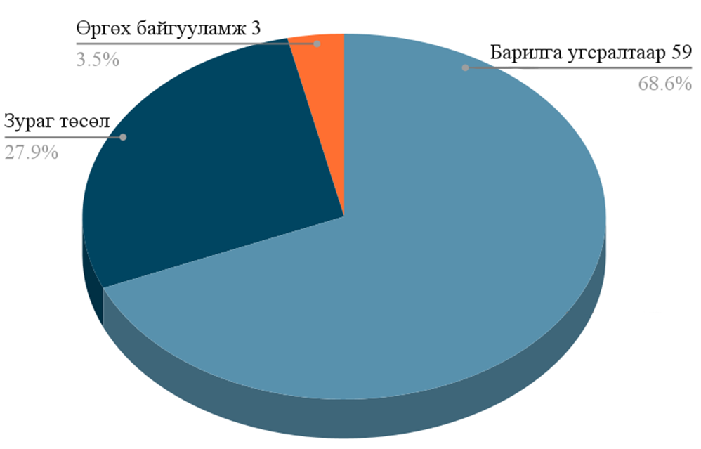 Сунгасан 86 ААНБ-д БҮАТЗ-өөс Барилга угсралтаар 59, Зураг төсөл боловсруулахаар 24, өргөх байгууламжаар 3 ААНБ байна.