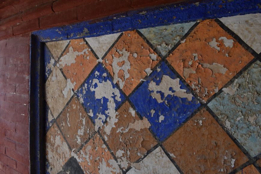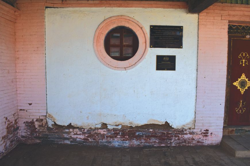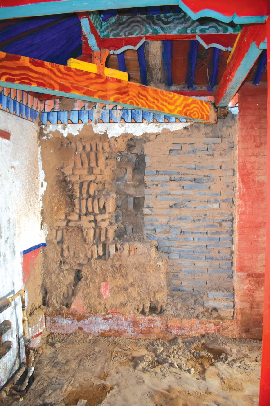 Сүмийн хана түүхий тоосгоор баригдсан. Хананы түүхий тоосго чийг авч суурь хэсгээс задрал явагдаж, суулт өгч, нурж байна.