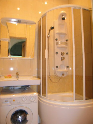 Том ширмэн ванны оронд жижигхэн зай эзлэх шүршүүр тавьж болно. Энэ өрөөнд тодорхой хэмжээний зай гаргахад ханандаа байрлуулсан дүүжэн сантехник чухал үүрэгтэй юм. Ингэснээр бохирыг зайлуулагч усны сав гэх мэтийн ил байдаг зүйлийг хананд нууж болох талтай. Дүүжин угаалтуур ч хананд бүх хоолойг нуух боломжийг олгодог. Заримдаа хананд байх хоолойг нуух боломжгүй байдаг. Тийм тохиолдолд жижигхэн шүүгээн дээр угаалтуураа тавьж болно. Эсвэл дээрээсээ бус урдаасаа угаах зүйлээ хийдэг угаалгын машин дээр ч тавих боломжтой.