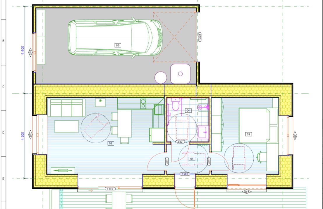 Мөн нарыг эрчим хүч болгохын тулд бүх байрлалаас хаусны талбай дээр нар тусаж, зүүнээс баруун тийш сунасан байдалтай 11.59 х 4.80 метр хэмжээ бүхий архитектуртай байхаар төлөвлөсөн. Энэ бол архитекторын 100 хувь мэдлийн ажил. Харин миний ажил бол байшинг нийтэд хүртээмжтэй байлгахад төвлөрч ажилласан. Нийтийн хүртээмжийг дэмжиж, ялгаварлан гадуурхалтыг бууруулах, олон нийтэд эерэг нөлөө үзүүлэх орчин бий болгоно гэж үзсэн. Миний хувьд маш сайн зураг төсөлтэй байвал алдаа бага гардаг юм байна гэдгийг ойлгосон. Яагаад гэвэл зураг дээр хараад алдаатай зүйлсийг өөрчлөх бол амархан, эрсдэлээ маш хямдхан бууруулж чадна. Харин нэгэнт баригдчихсан хойно өөрчлөх шаардлага тулгарвал өртөг, цаг хугацаа, хүн хүчийг ахин зарцуулна. Энэ нь өртөг мэдээж өндөр гарна гэдгийг сурсан. Зураг төсөл дээрээ маш сайн ажилласан ч миний хувьд бага хэмжээний алдаа гаргачихсан байсан. Түүний засах гэж тодорхой хэмжээнд цаг зав, мөнгө зарцуулсан.