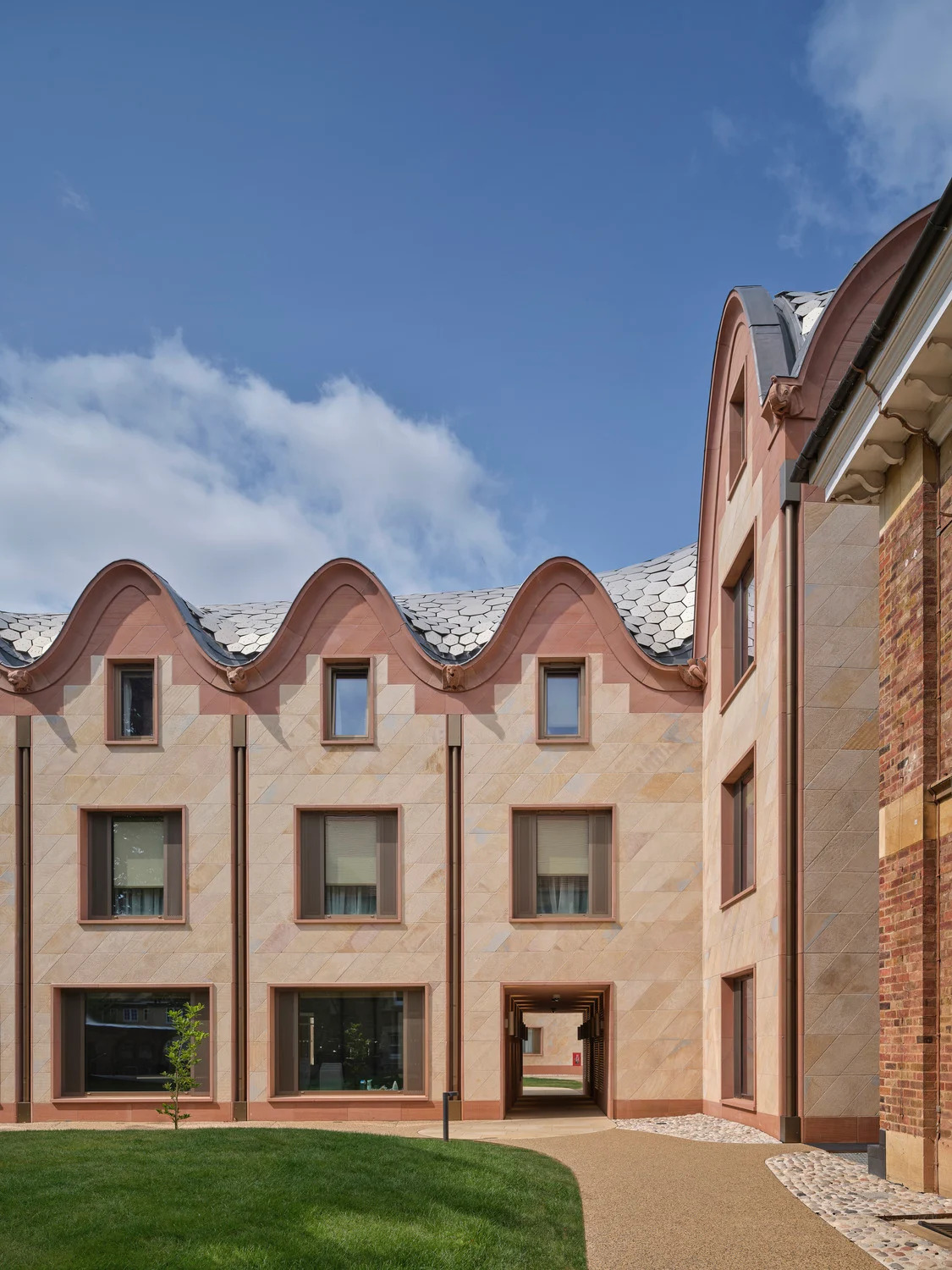 Дэвид Кон Шинэ коллежийн барилга бүтцийн шинэ хэсгийг зохион бүтээхдээ нэгэн шинэ төрлийн архитектурын загварыг сонгожээ. Түүний энэ бүтээл нь дөрвөлжин хэлбэрийн, эв нэгдэлтэй бөгөөд орчин үеийн, мөн уламжлалт хэв маягийг хослуулсан онцлогтой. Энэ бүтээл нь түүхэн байшингийн гадна төрхийг эвдэхгүйгээр, орон зайг өргөжүүлэх болон гэрэл, сүүдэрийн тоглоомыг сайн ашиглахыг зорьжээ.