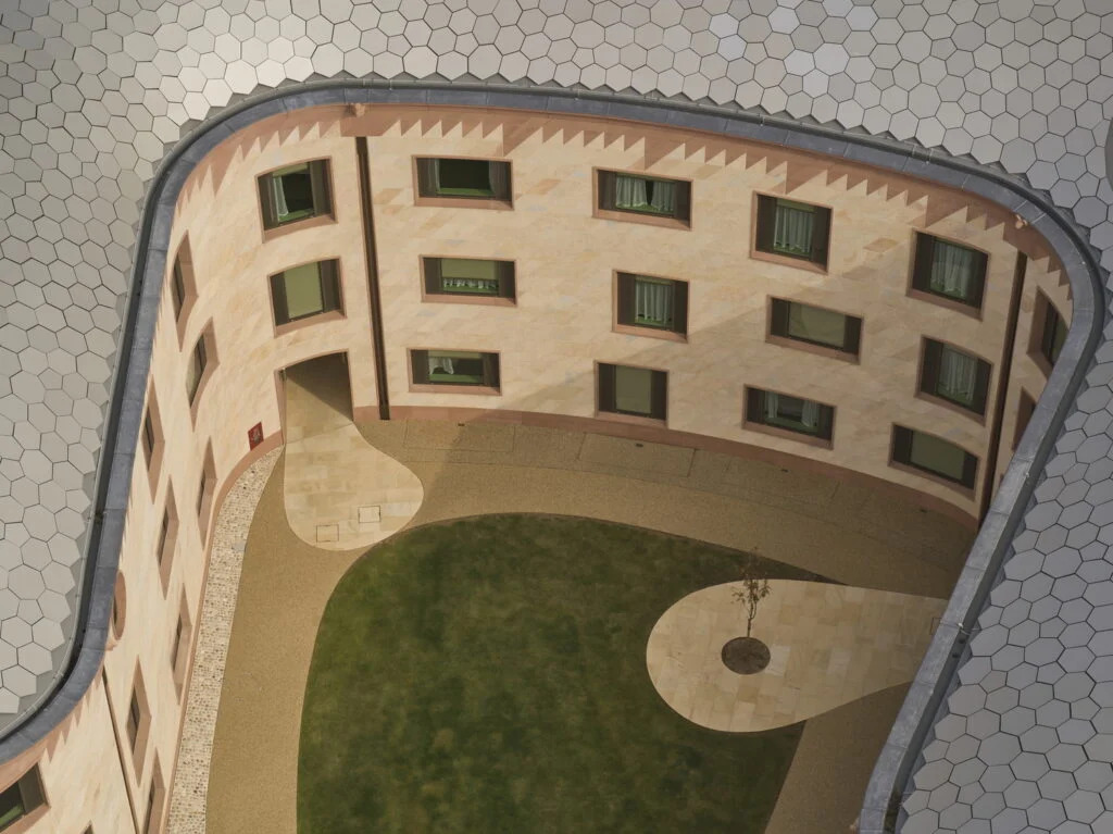 Материал: Барилгын гадна болон доторх материалууд нь орчин үеийн материал, мөн уламжлалт материалаар хослуулан ашиглагдсан. Жишээ нь, чулуун бүрхүүл болон металл элементүүдийг сайтар хослуулсан байна.
