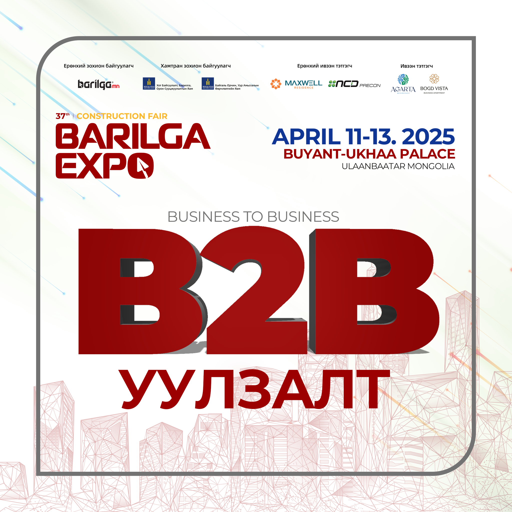 “37 дахь удаагийн BARILGA EXPO” олон улсын барилгын үзэсгэлэн яармаг худалдааны үеэр зохион байгуулагдах B2B уулзалтад урьж байна.