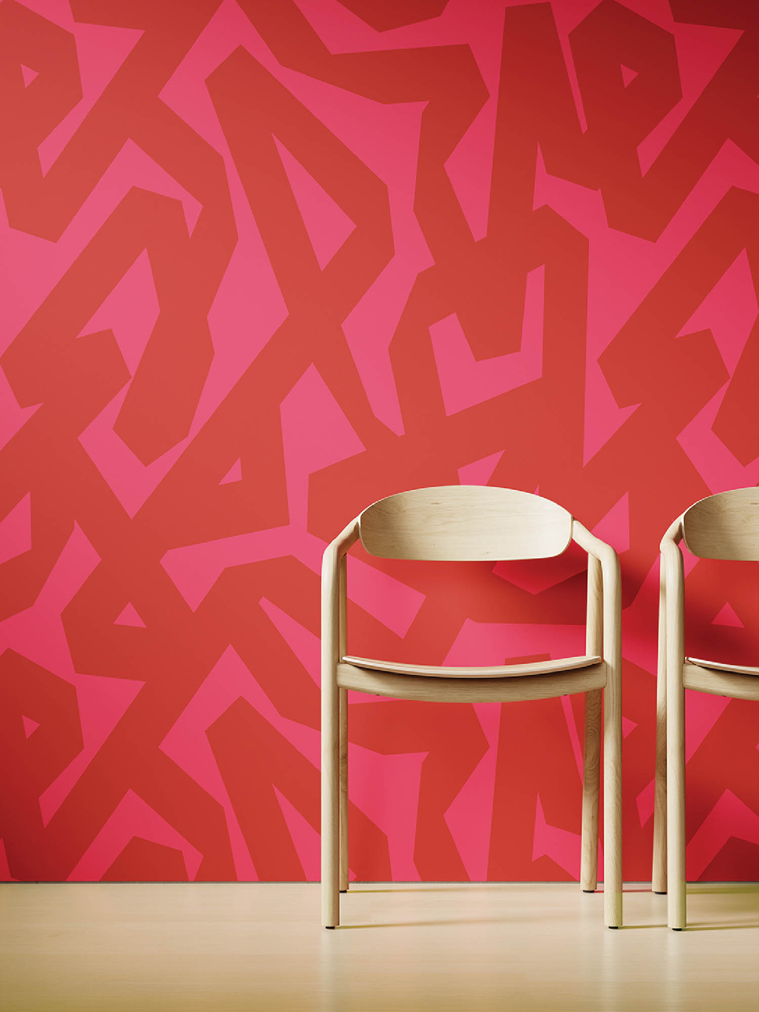 Тийм ээ, би анхнаасаа л туузны энэ эргэлтийг давхар өнгөөр давхарлан бий болгохыг зорьсон. Энэ нь надад торгон хэвлэлийн үеэр гардаг өнгөний давхцал, гурав дахь өнгө үүсэх мэдрэмж өгдөг. Энэ бол надад хүч, хөгжилтэй мэдрэмж төрүүлдэг график элемент. Энэ загварын “Flat Ribbon” нэртэй хатуу өнгөт хувилбар нь Designtex-ийн цахим платформоор ханын цаас/обой/ болгон захиалах боломжтой.