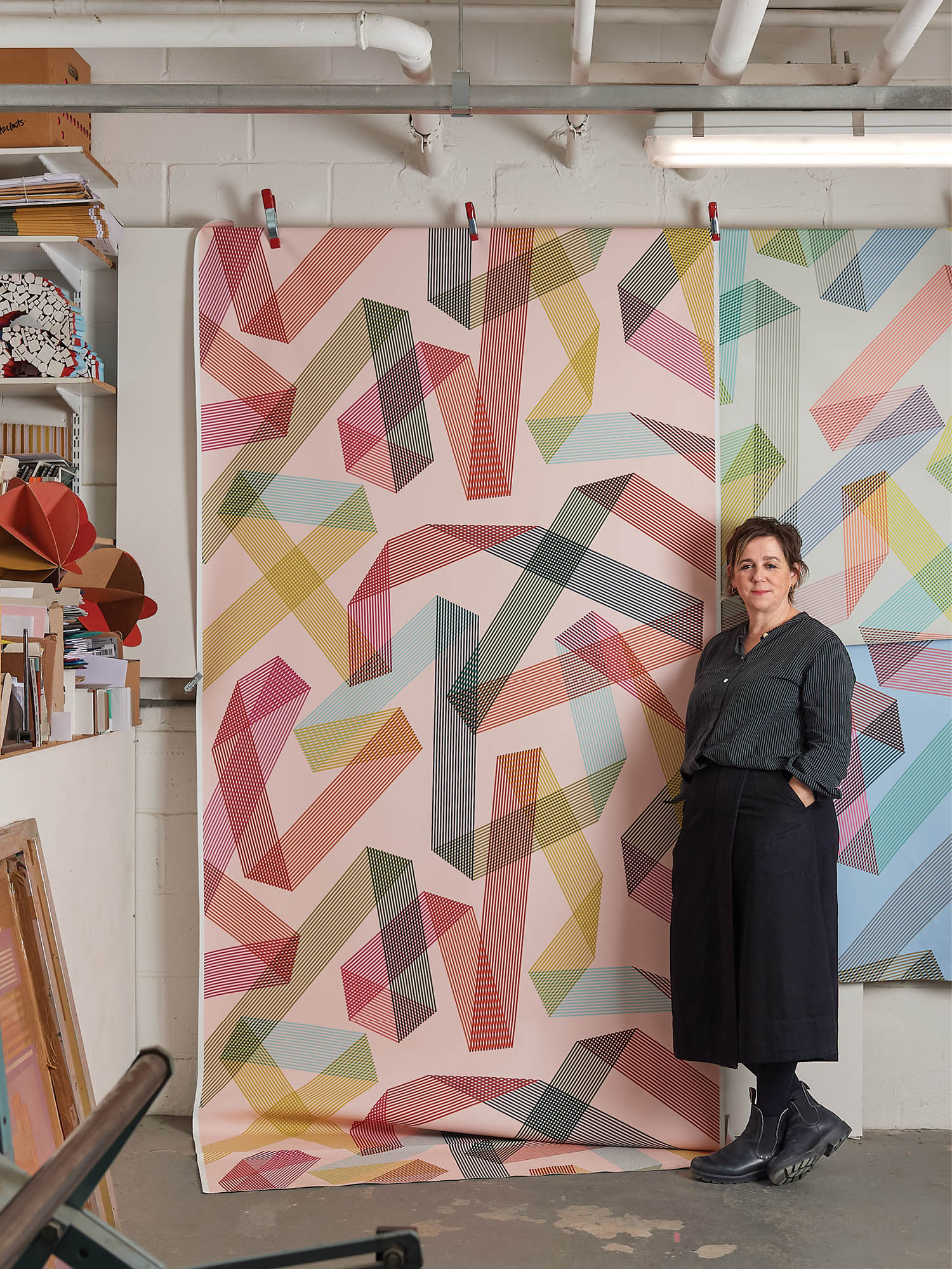 Уран бүтээлч Софи Смолхорн өөрийн Лондон дахь студидээ, ард нь Designtex компанид зориулан бүтээсэн “Ribbon” нэртэй бүрээстэй даавууны загвар байрлана. Энэхүү бүтээл нь түүний нэхмэлийн дизайны анхны оролдлого юм.