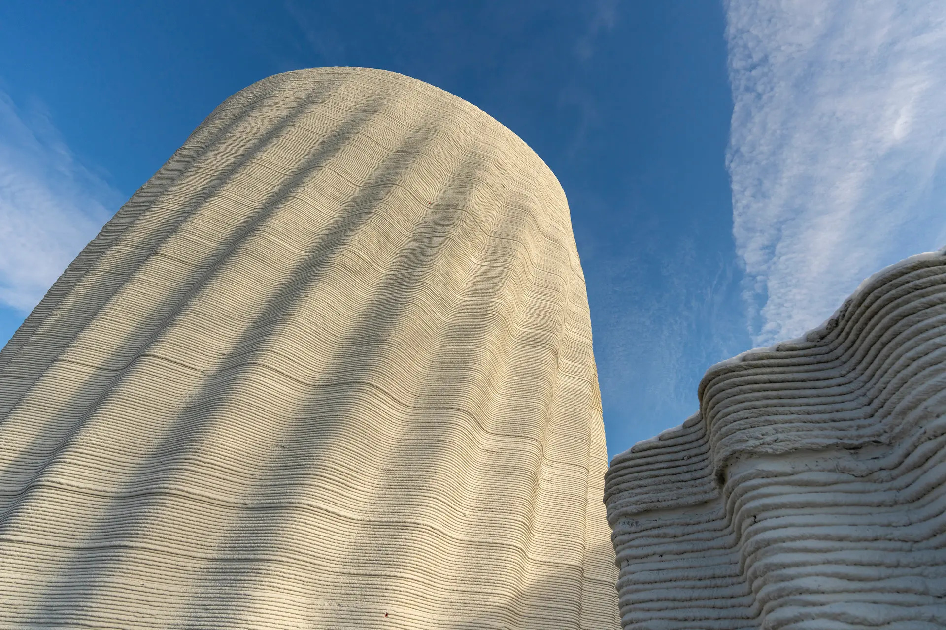 Ийм долгиолсон ханануудыг уламжлалт барилгын аргаар бүтээх боломжгүй бөгөөд дахин боловсруулж болох цементэн төрлийн хольцыг цоргоороо үе үеэр шахан гаргаж, гадна ханыг бүтээжээ. Барилгын нийт талбай нь 600 м² талбайтай, 54 метр урт, 11 метр өргөн, 9 метр өндөр ажээ. Барилгын ханануудыг 140 цагийн дотор хэвлэж дуусгасан нь 3D барилгын технологийн хурд, үр ашгийг харуулж байна .